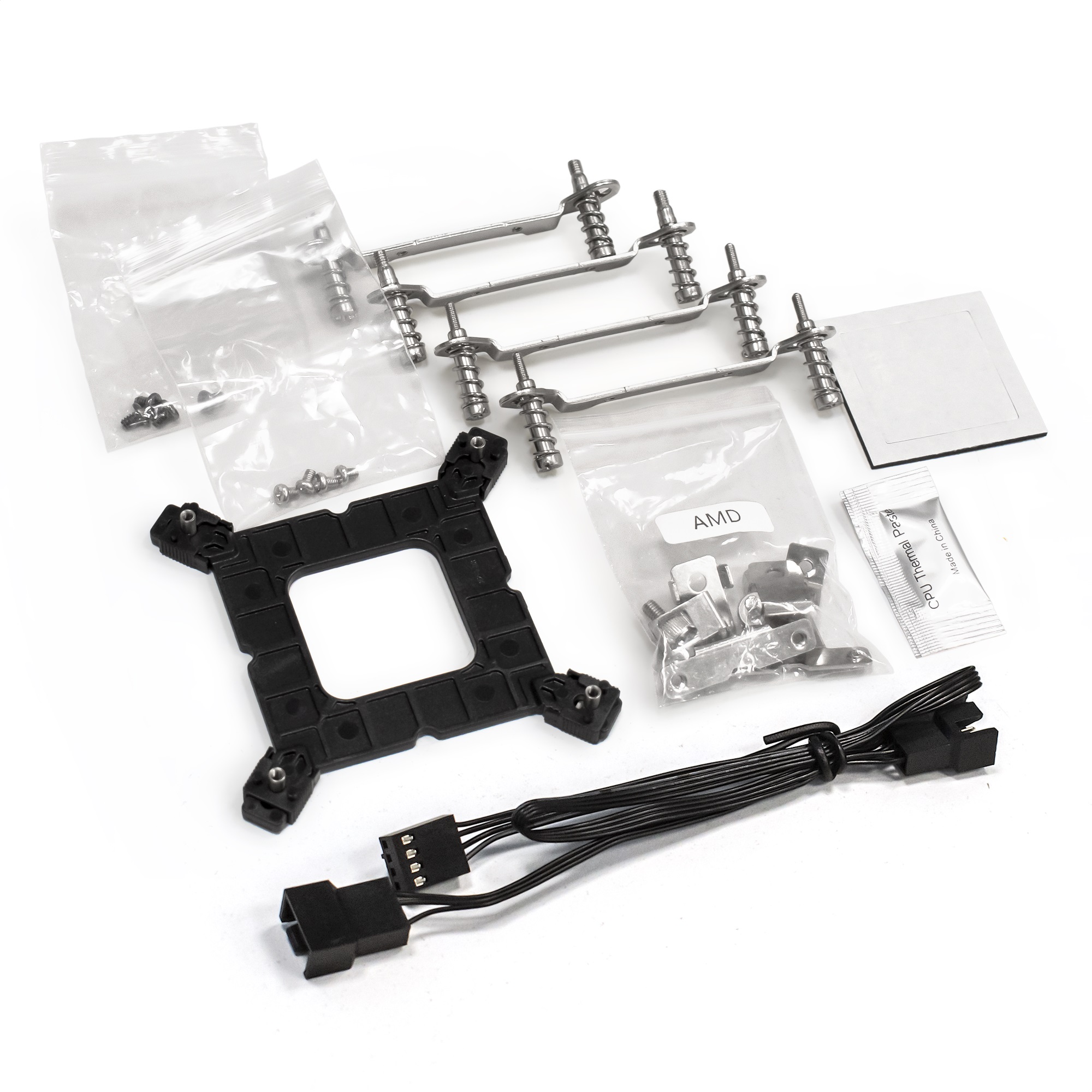 Комплект водяного охлаждения ExeGate BlackWater-240V2.PWM.RGB (RGB подсветка, LGA2066/2011/1366/1150/1151/1155/1156/1200/17 00/1851/AM4/AM5/FM1/FM2/FM2+/AM2/AM2+/AM3/AM3 +, TDP 220W, Fan 120mm, PWM, 800-2000RPM, Hydro bearing, 4pin, 11-22db, с термопастой, на винтах, черный, Color Box)