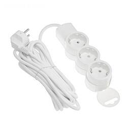 Удлинитель Duwi, 3 розетки, 5 м, 10 А, 2200 Вт, ПВС 3х0.75 мм2, с з/к, белый