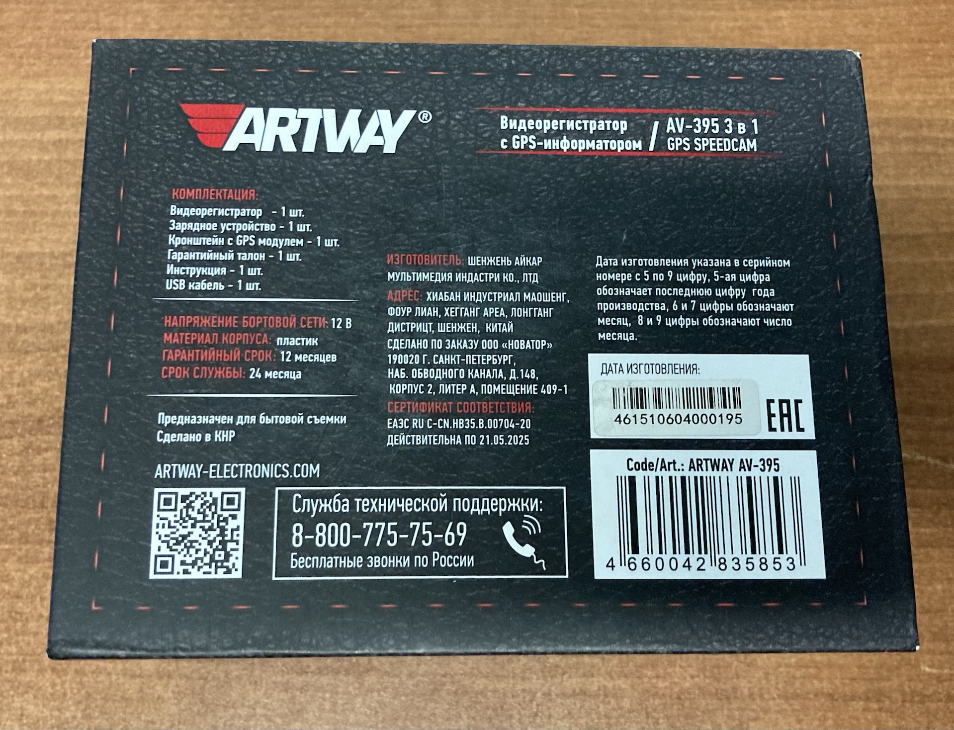 Описание товара Видеорегистратор Artway AV-395 GPS SPEEDCAM 3 в 1 состояние хорошее