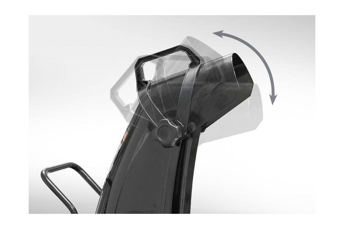 - Поворотный выпускной желоб отбрасывает снег в заданном направлении;