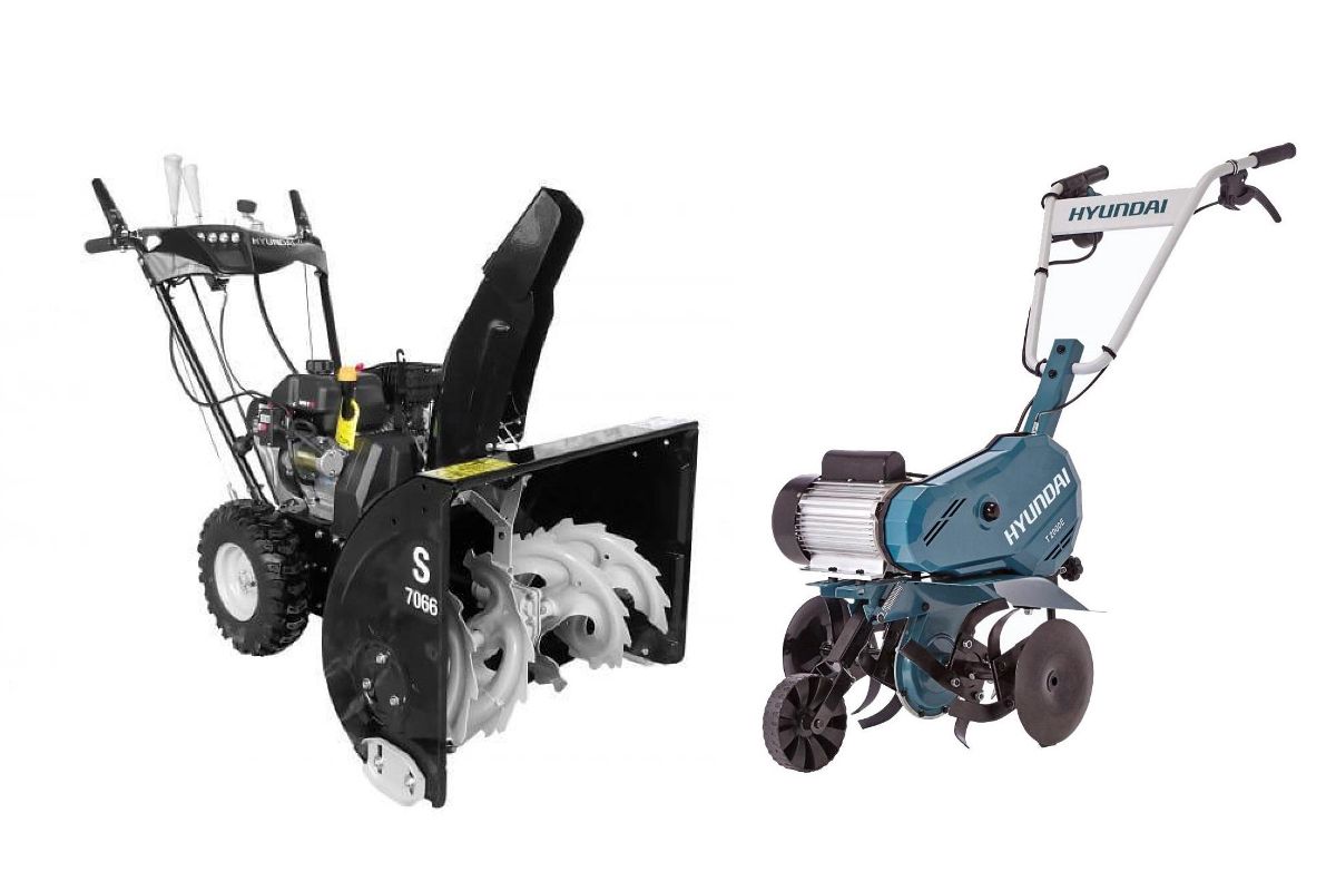 В состав набора входят: Снегоуборщик HYUNDAI S 7066 7лс выброс 11м, Культиватор HYUNDAI T 2000E электрический 2000Вт
