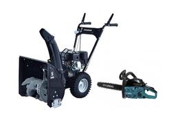 В состав набора входят: Снегоуборщик HYUNDAI S 5556 5.5лс выброс 11м, Бензопила HYUNDAI Х 4118