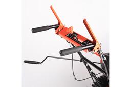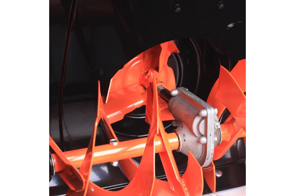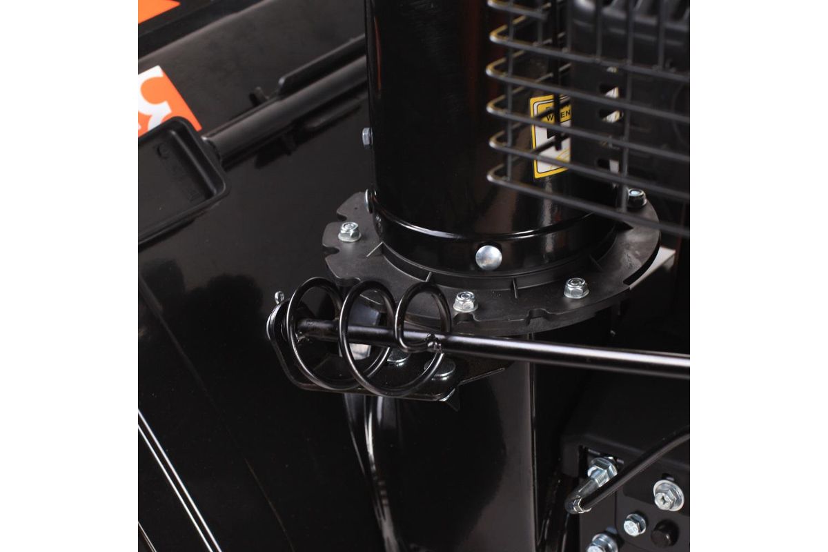 Направление выброса снега настраивается в пределах 190о перед снегоходом. Просто поверните рычаг под рукояткой.
