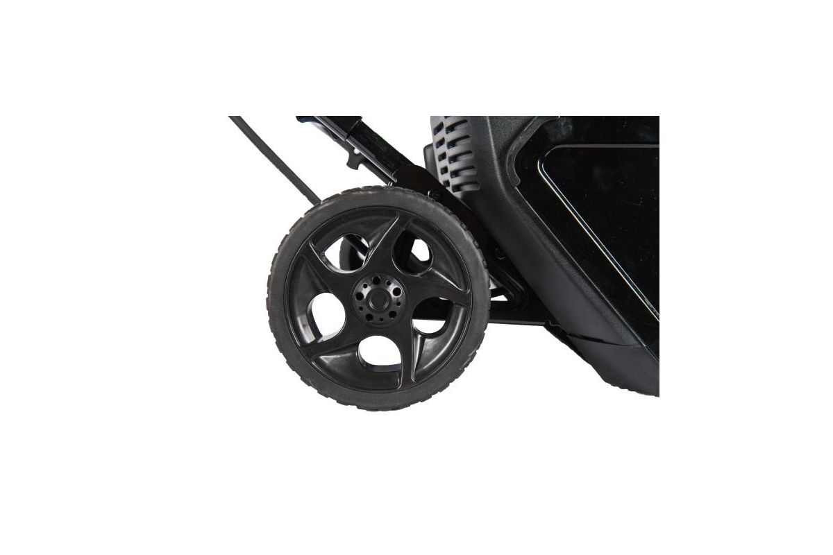 Большие прорезиненные колеса не завязнут в снегу и удобны для перевозки снегоуборщика