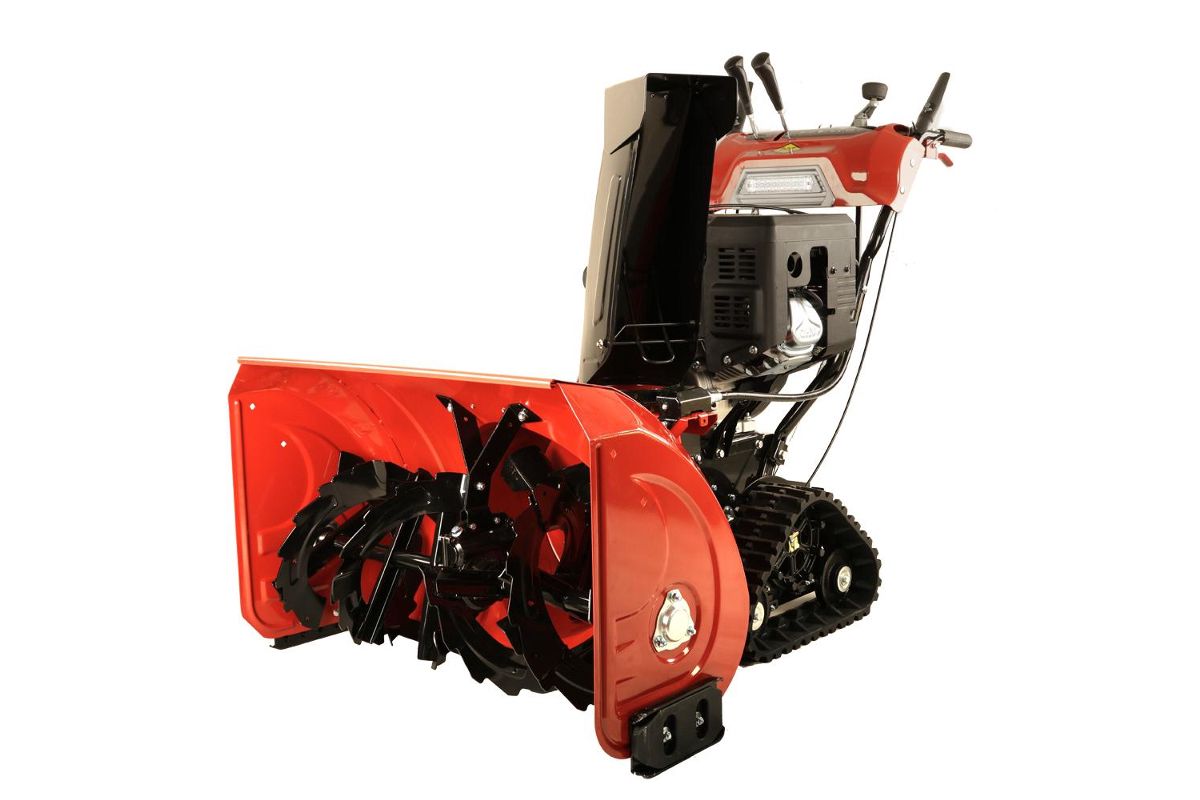 Снегоуборщик на гусеничном ходу не скользит на льду и может работать в местах с неоднородным рельефом.