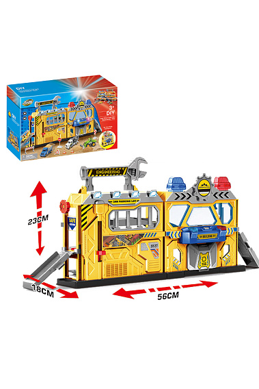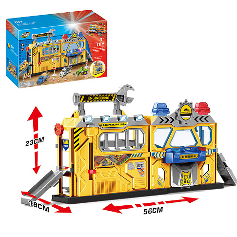 Игровой набор "Паркинг. Спецтехника" - это интересная игрушка, которая станет прекрасным подарком для юного автолюбителя. Внутри чемодана спрятан трехэтажный паркинг, с мойкой для машин, лифтом и различными спусками. Световые и звуковые эффекты, которыми оснащена игрушка, сделают игру с ней ещё динамичнее и веселее.