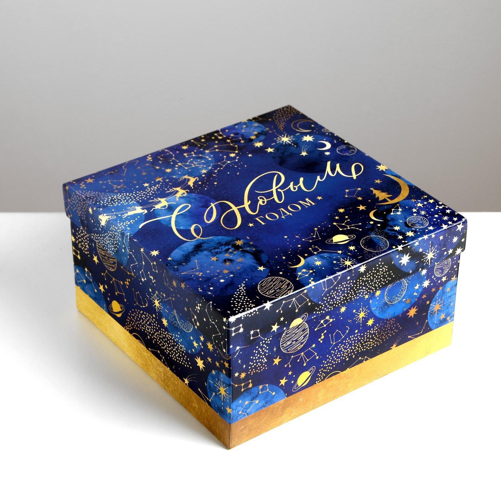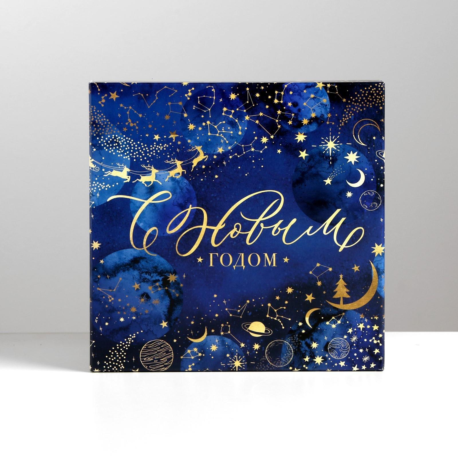 Коробка подарочная «Новогодний космос», 22 × 22 × 12 см