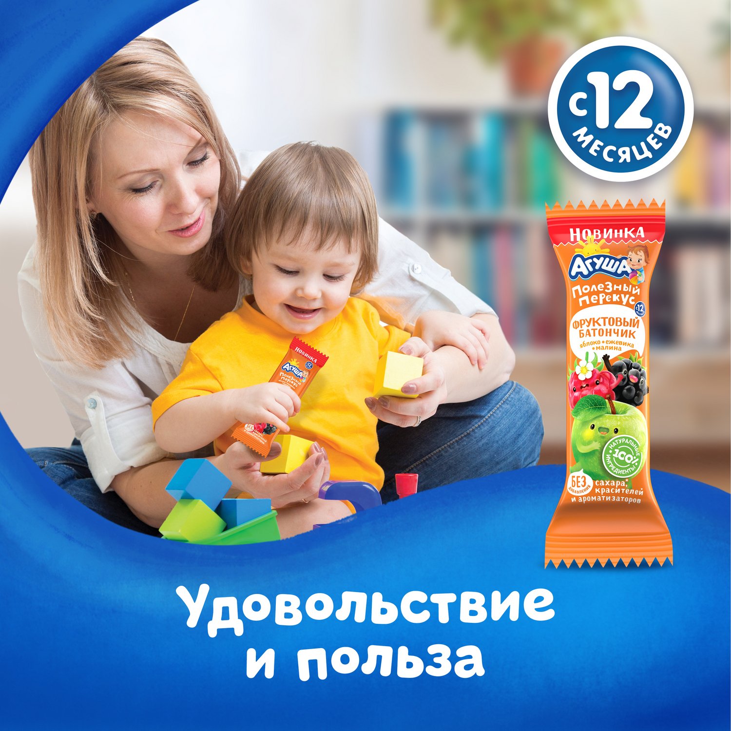 Батончик Агуша Полезный перекус яблоко-ежевика-малина 15г с 12месяцев 4690228102714
