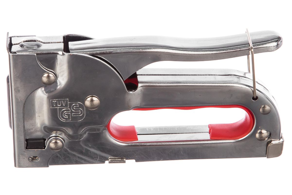 Мощный мебельный степлер используется для сборки мебели. Стальная конструкция корпуса делает степлер надежным и комфортным в использовании.