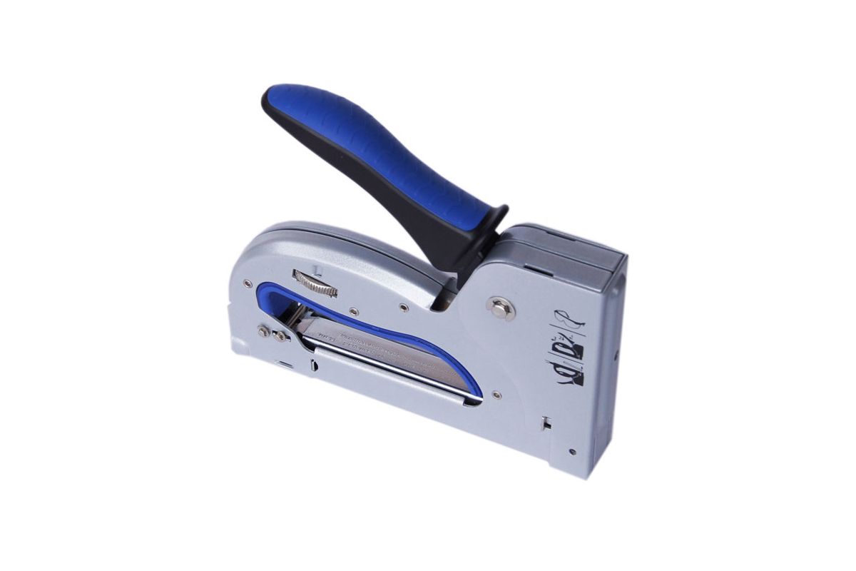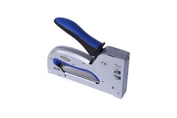 Степлер изготовлен из стали. Металлическая рукоятка и область захвата на внутренней части степлера оснащены специальными анатомическими накладками из пластика и резины для усиления защиты руки.