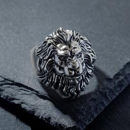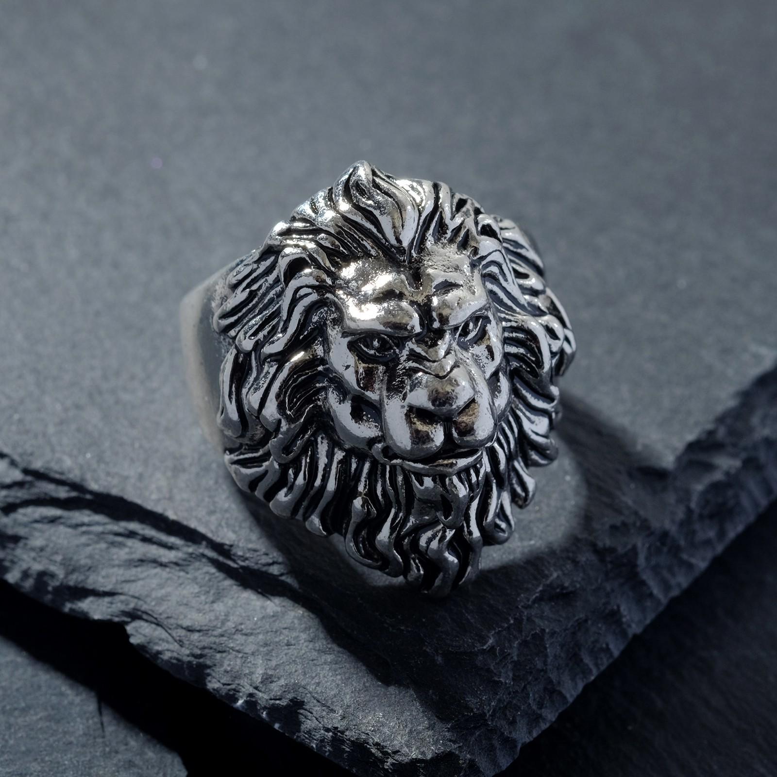 Кольцо "Перстень" лев, цвет чернёное серебро, безразмерное