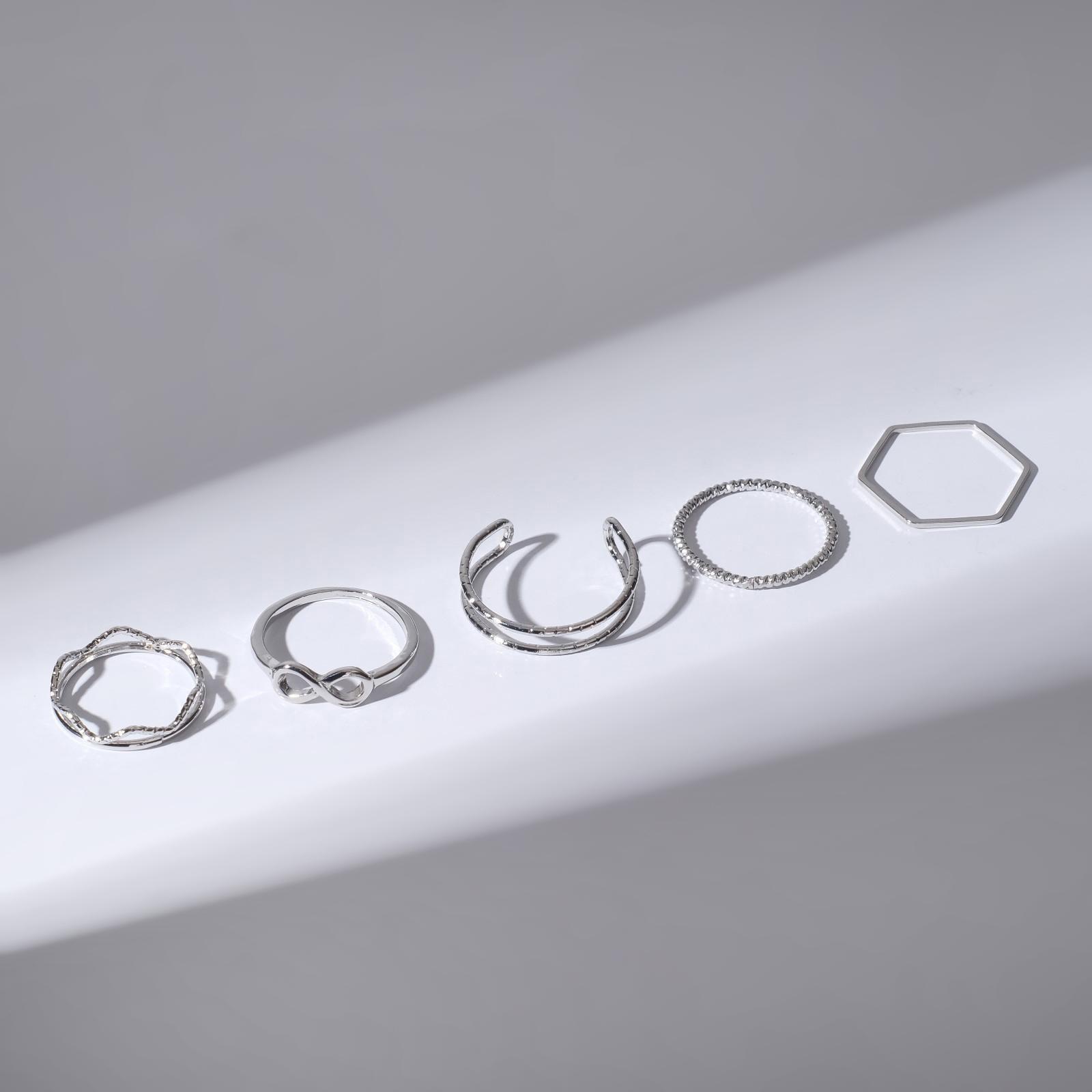 Кольцо набор 5 штук "Идеальные пальчики" тонкость, цвет серебро