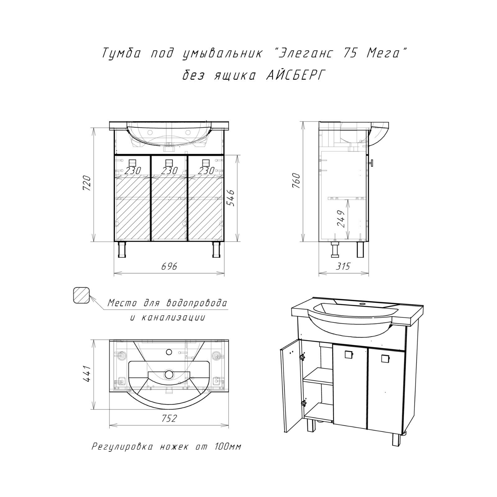 Тумба "Мега" без ящика под Раковина "Элеганс 75"