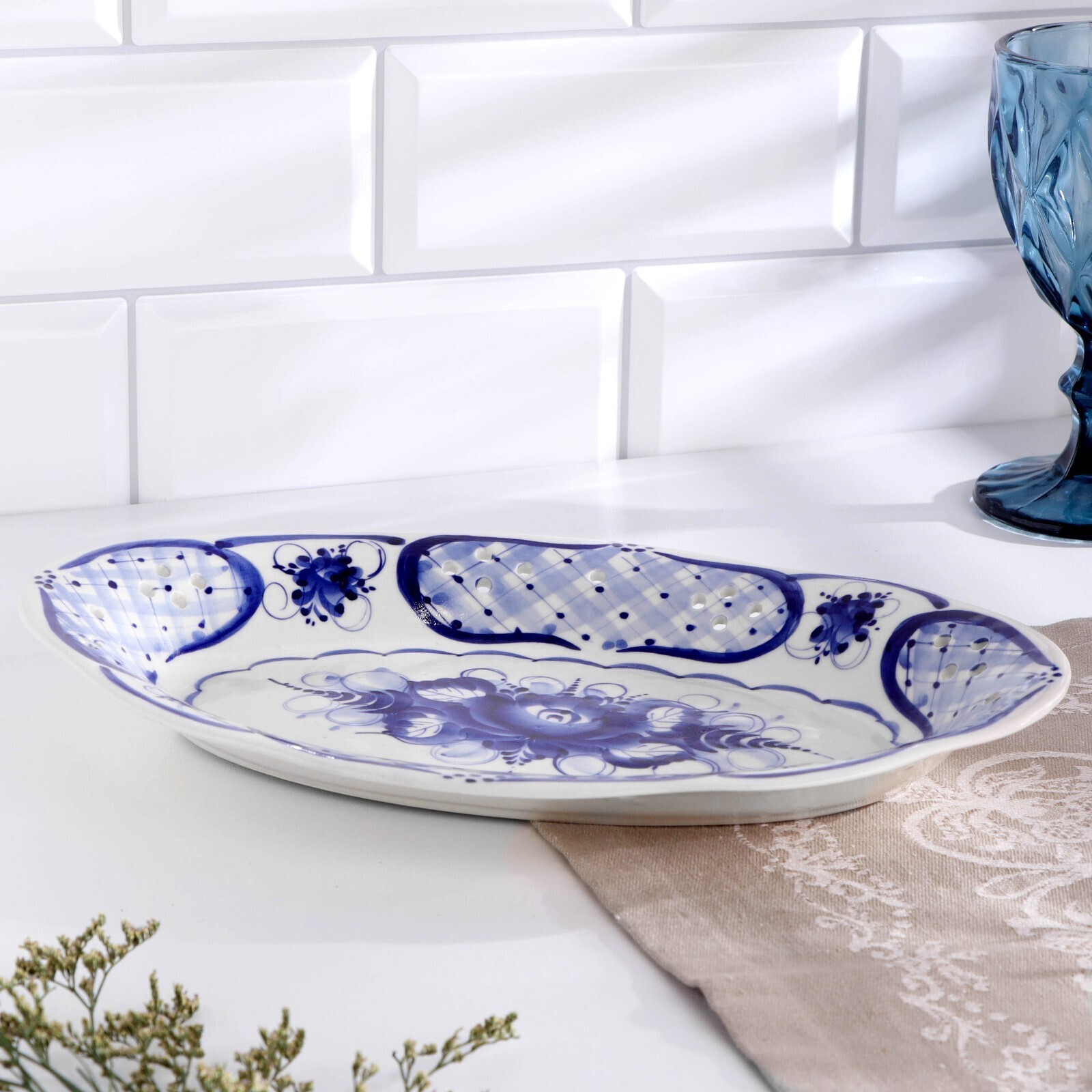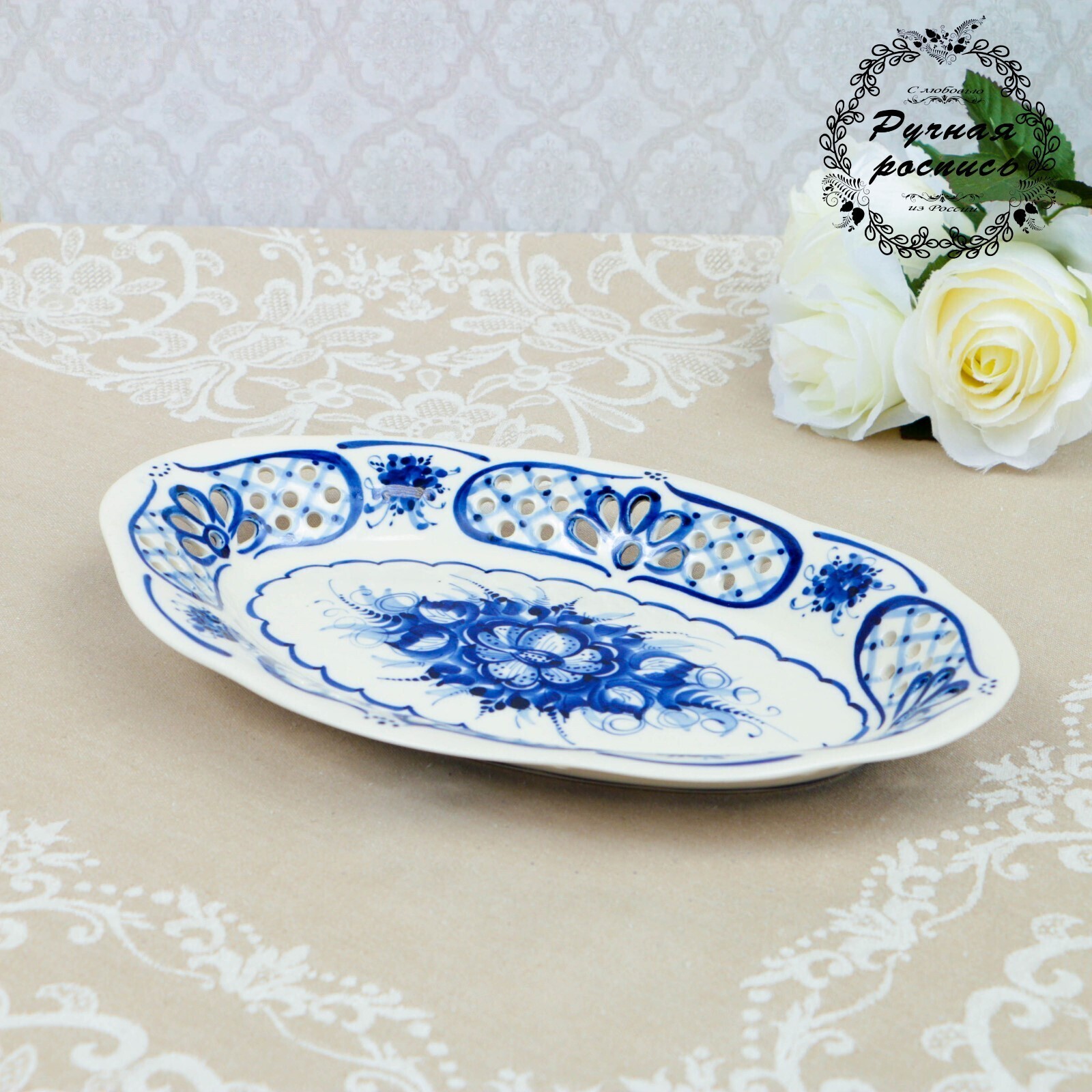 Блюдо "Ажурное", гжель, фарфор, 30х20 см