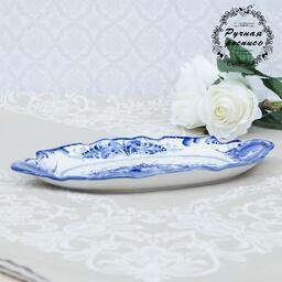Блюдо под нарезку "Цветок", гжель, фарфор, 2,5х31 см