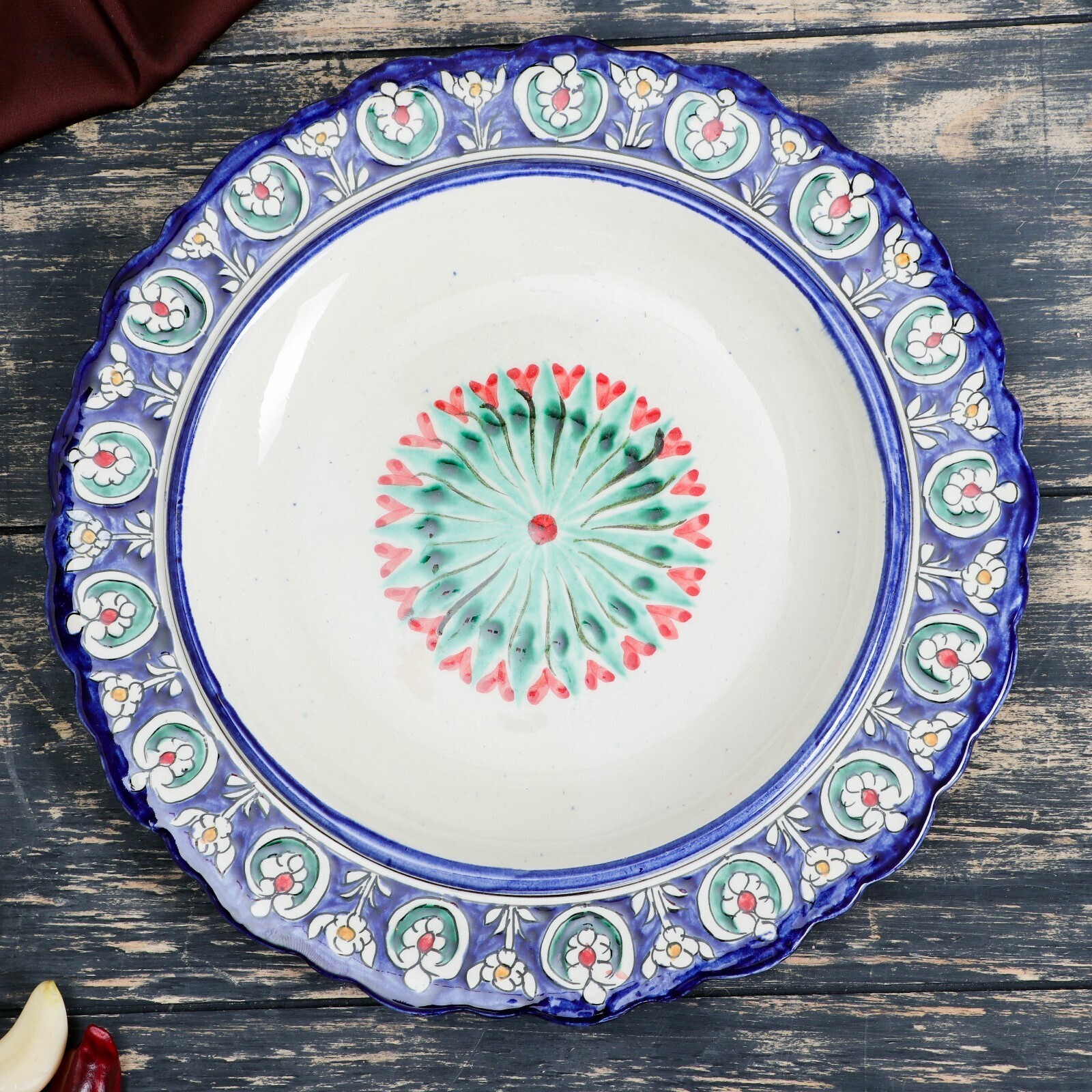 Блинница Риштанская Керамика "Узоры", 24 см, синий