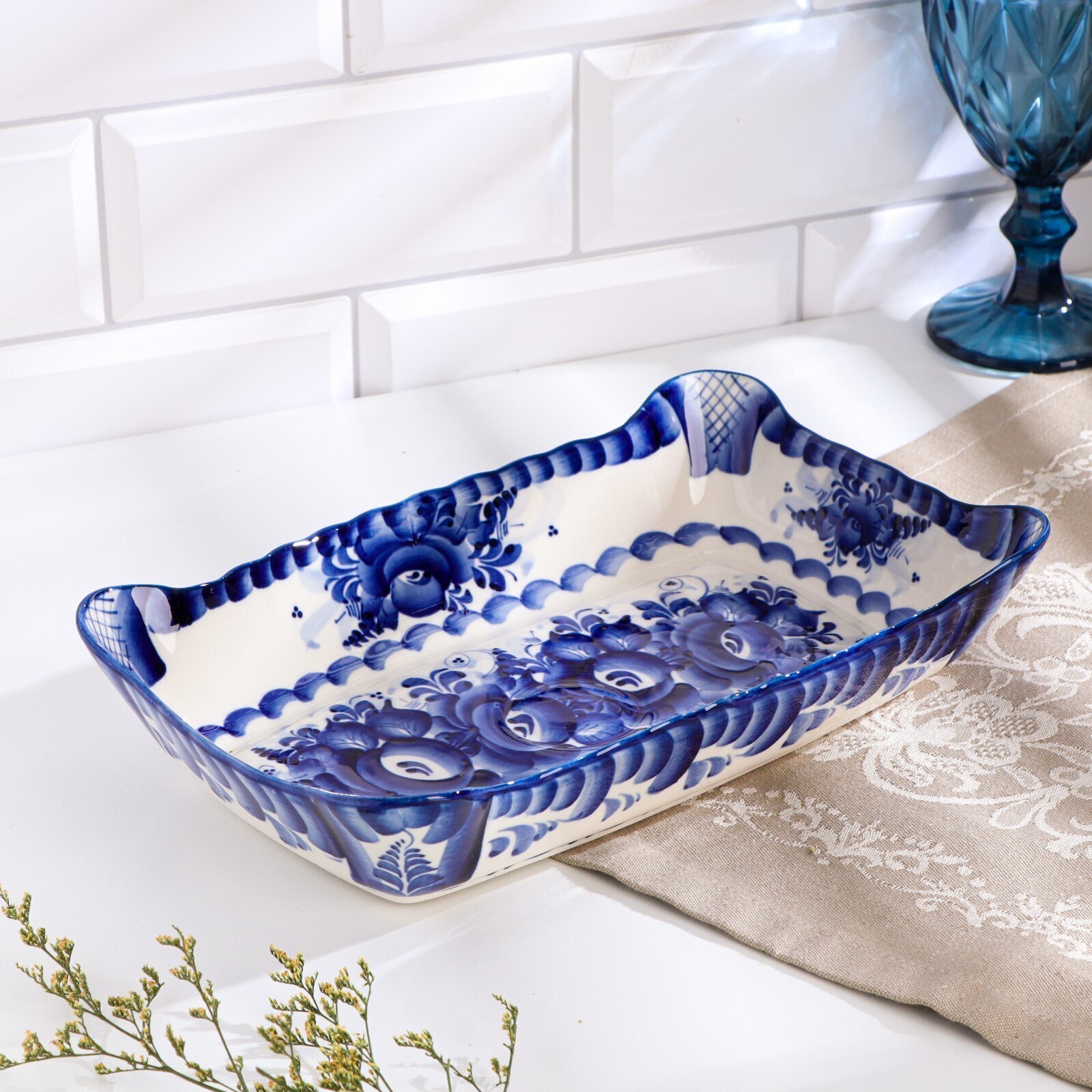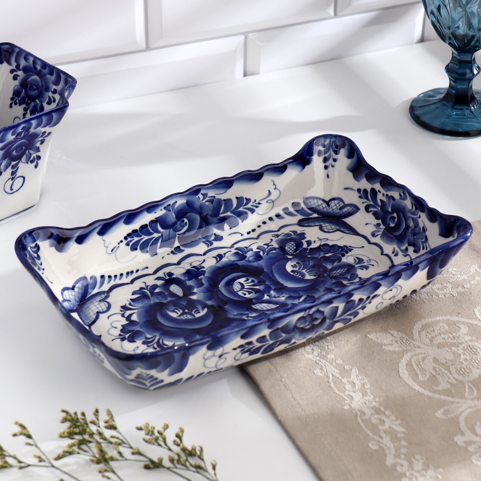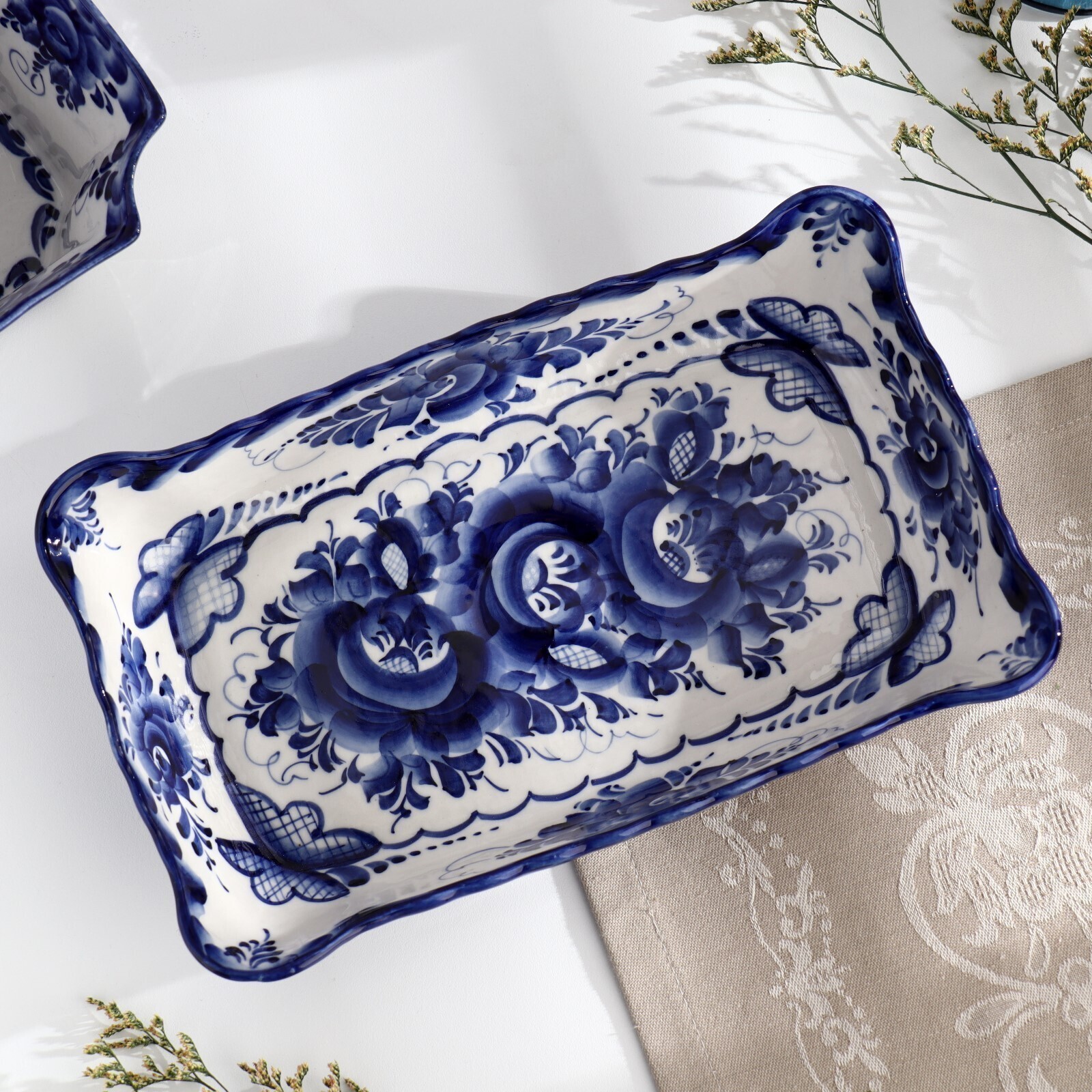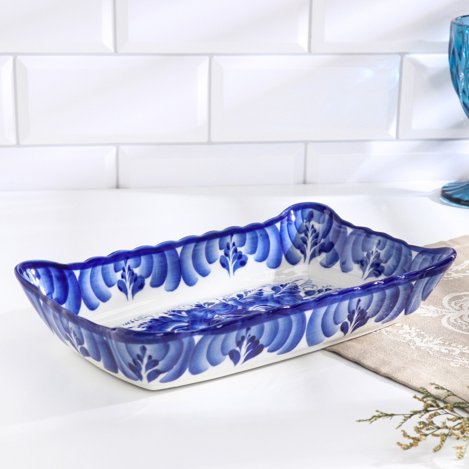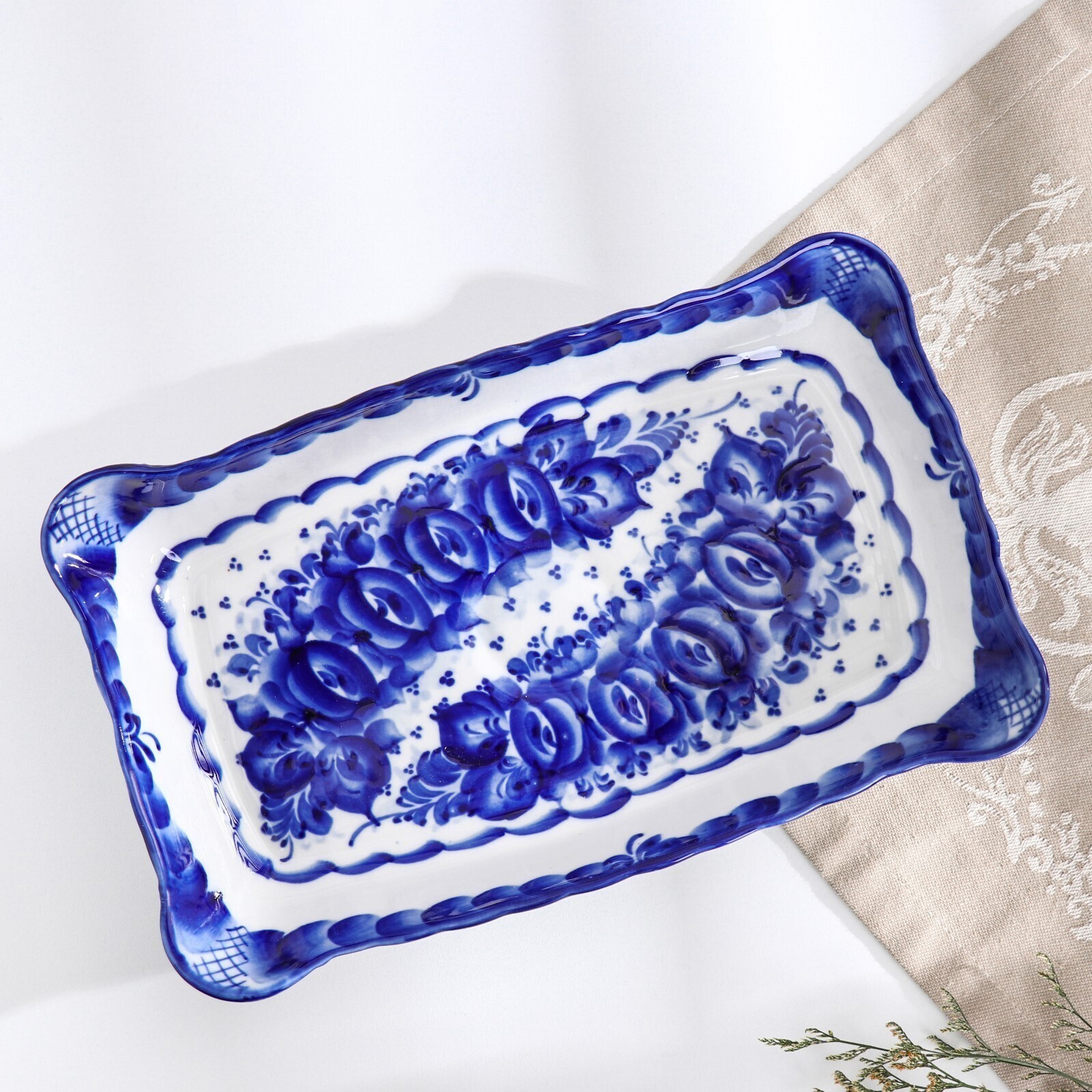 Блюдо под заливное, гжель
