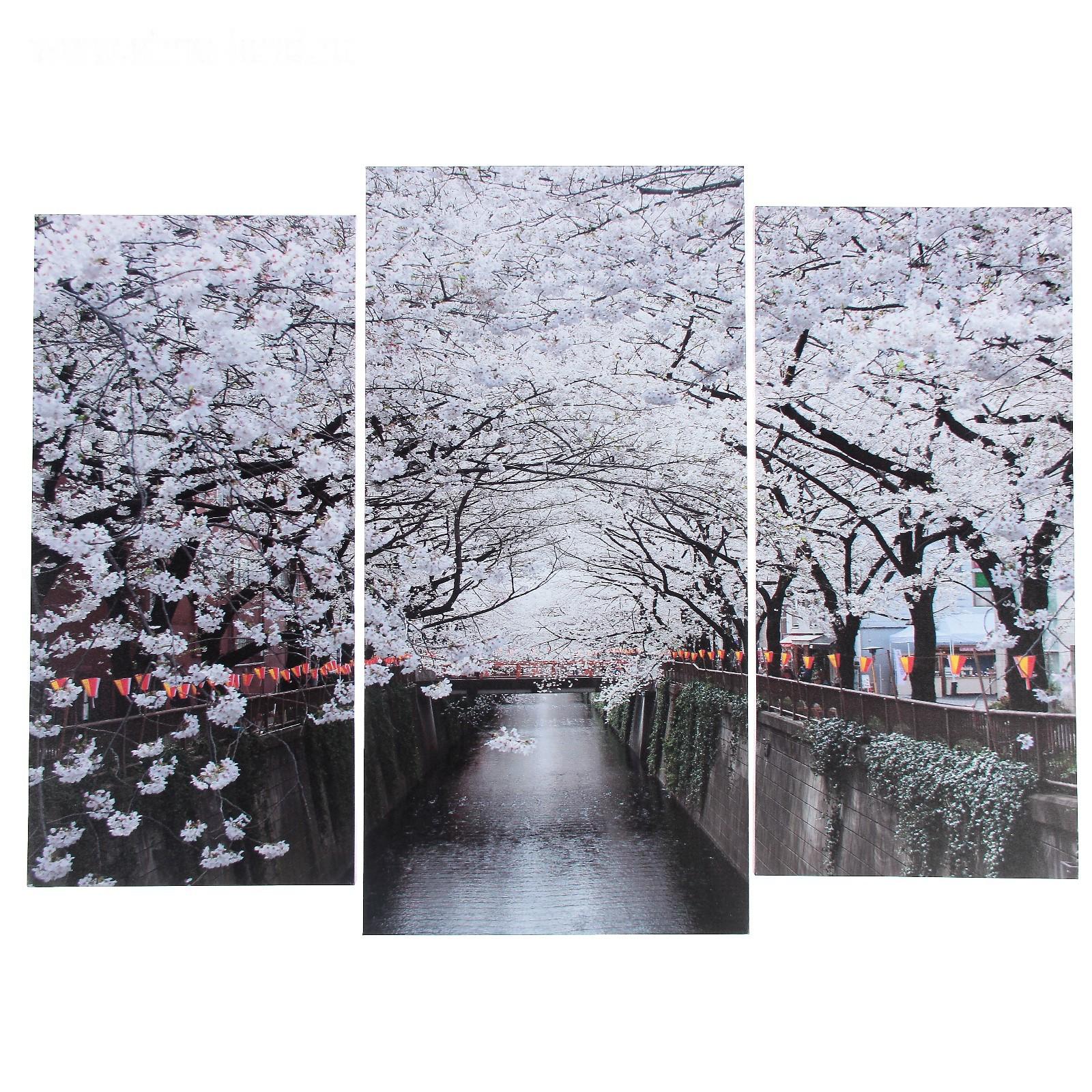 Модульная картина "Цветущие деревья" (2-25х52; 1-30х60) 60х80 см