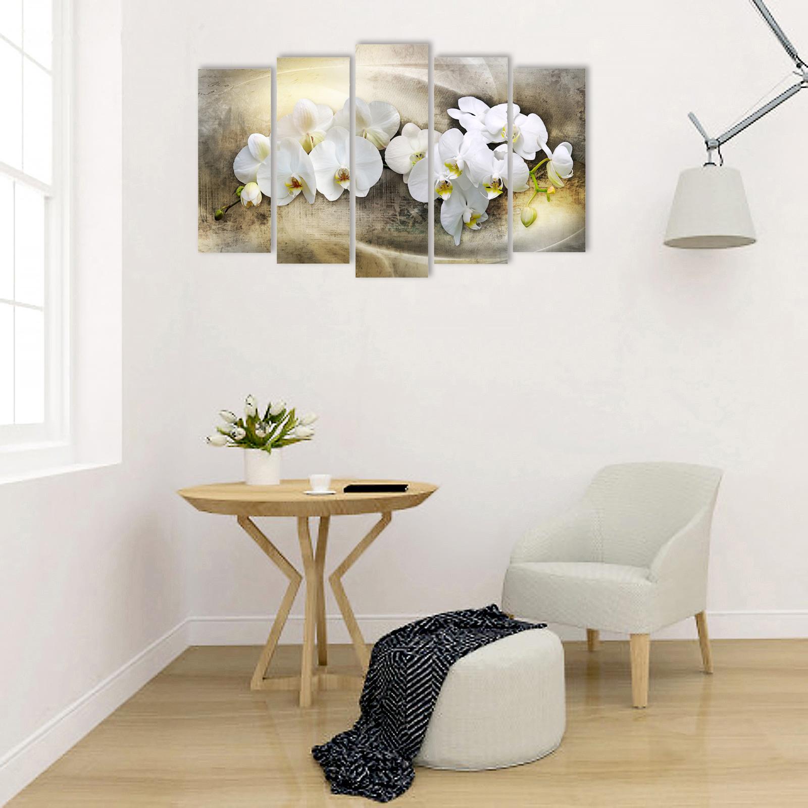 Картина модульная на подрамнике "Белый фаленопсис" 2-25*63; 2-25*71; 1-25*80: 125*80 см