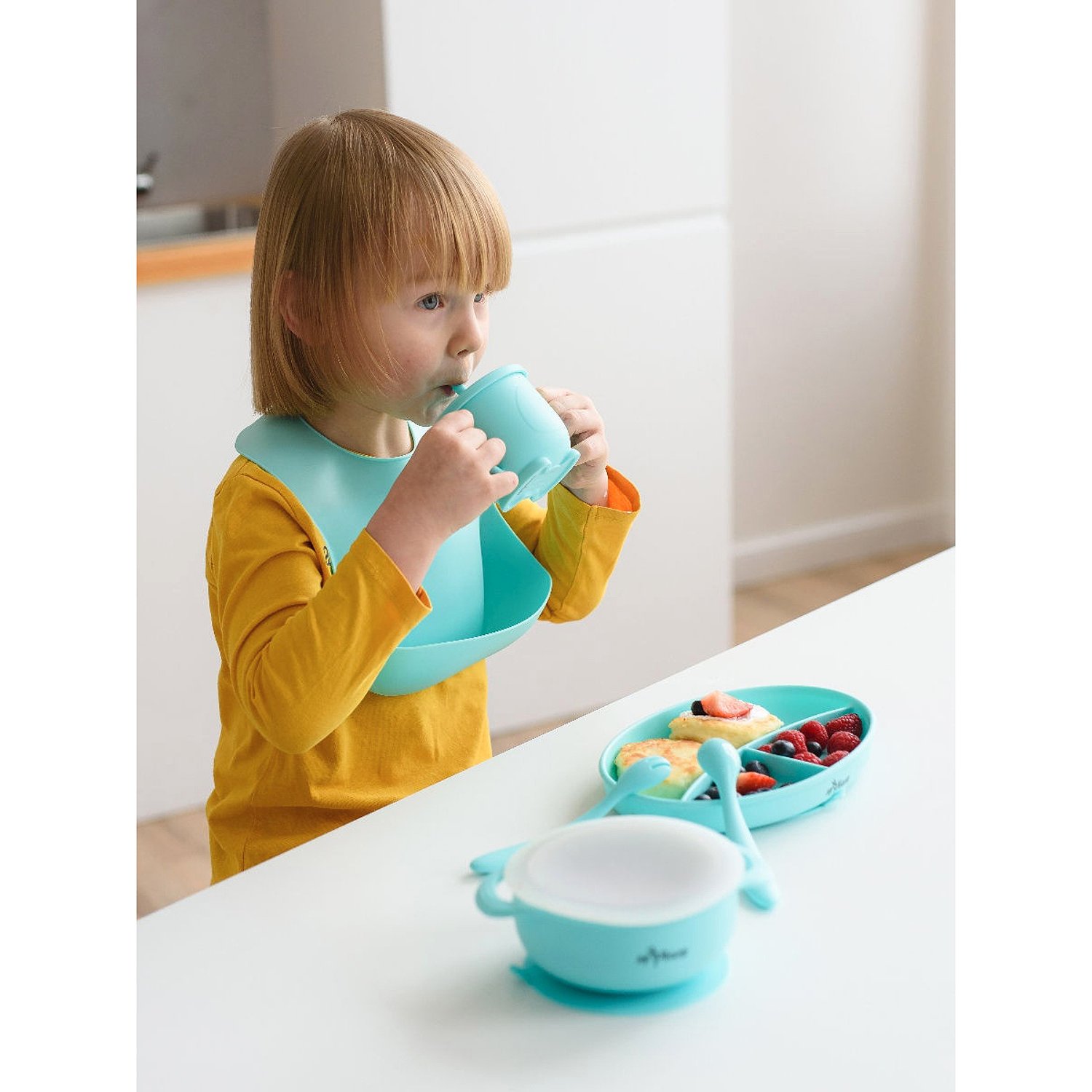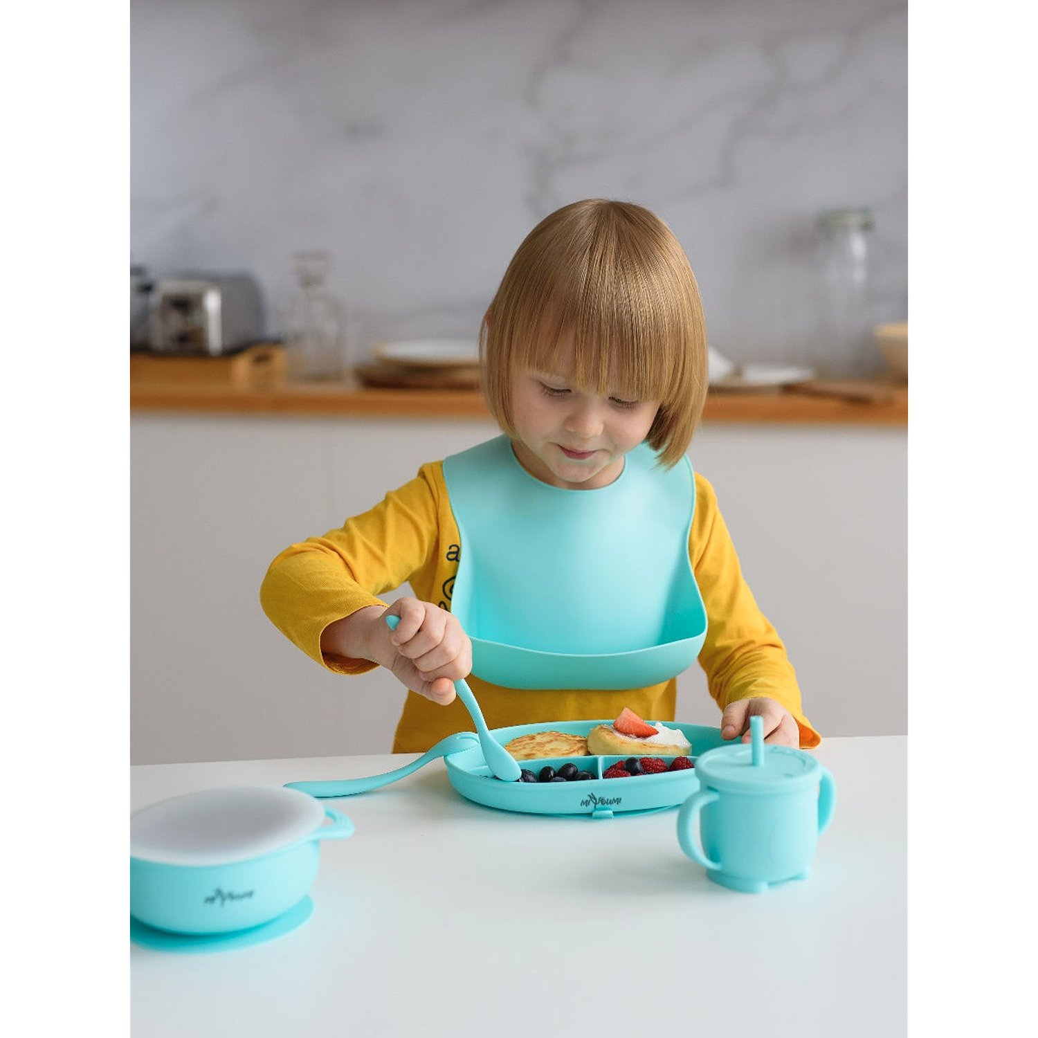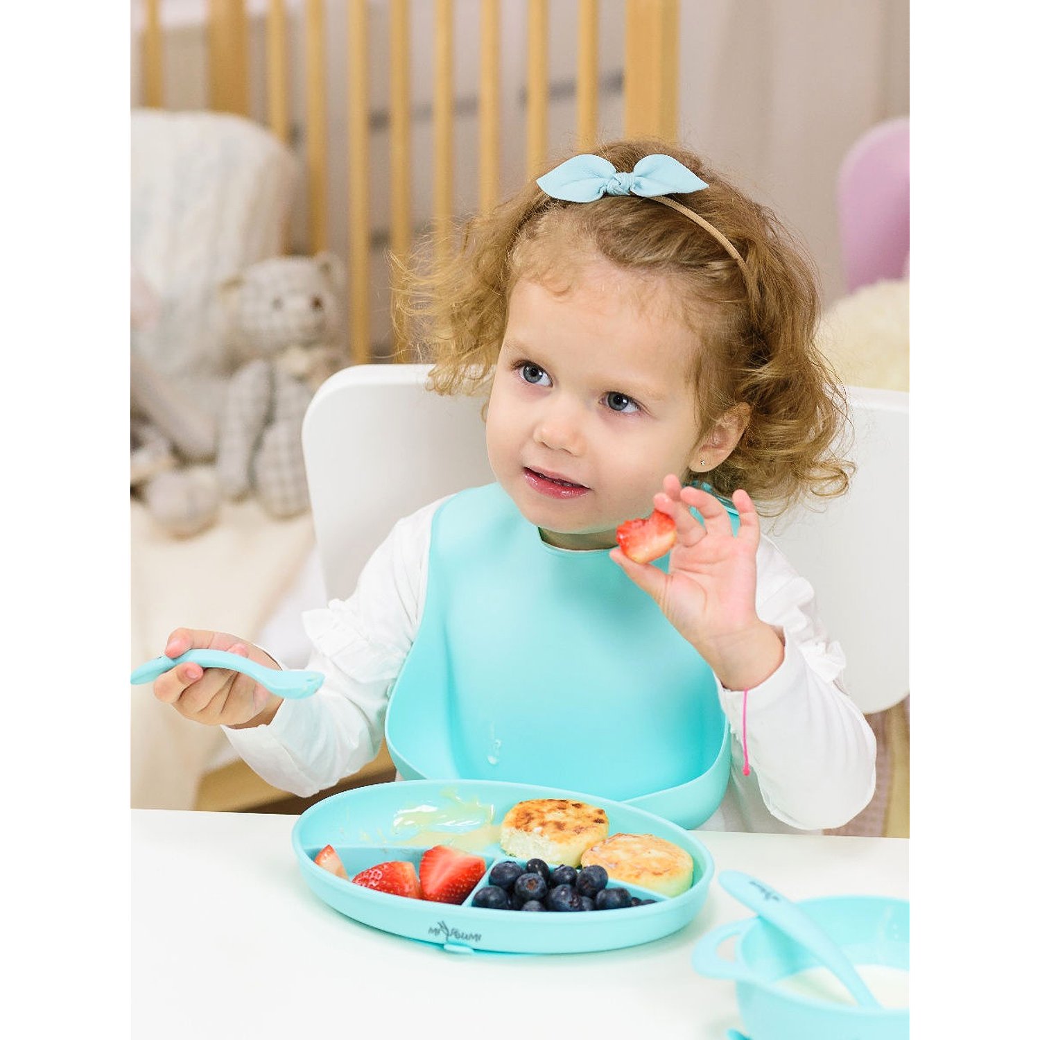 Нагрудник силиконовый Miyoumi с карманом - Mint N0001/226