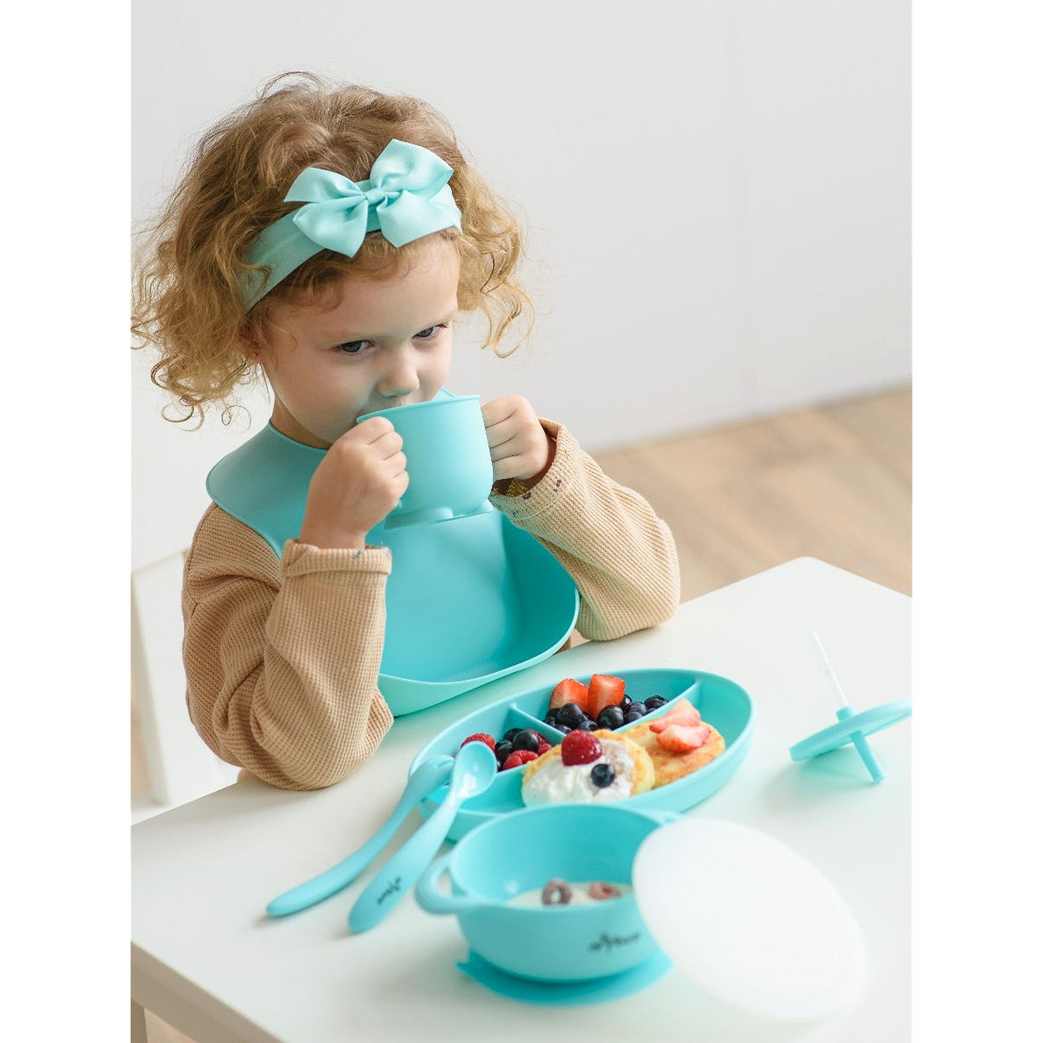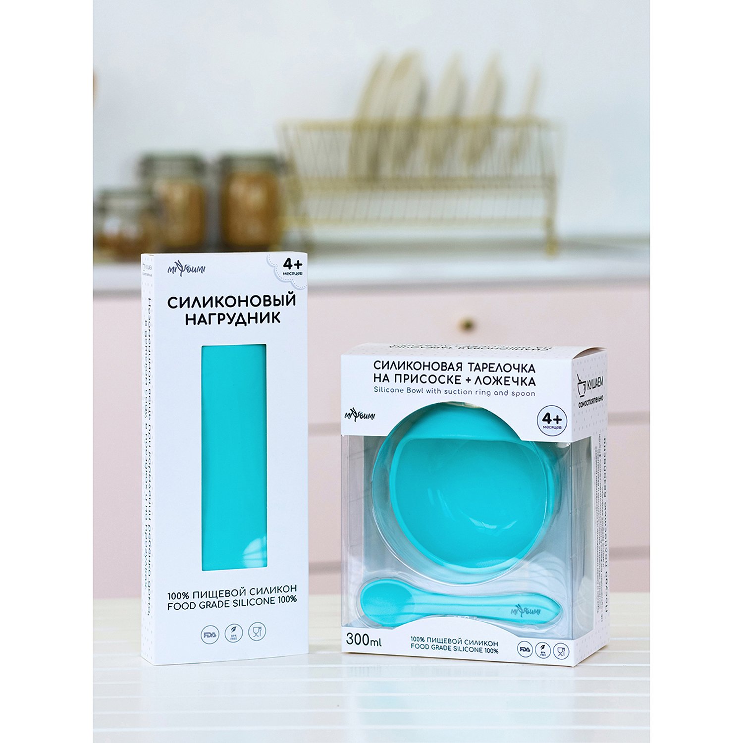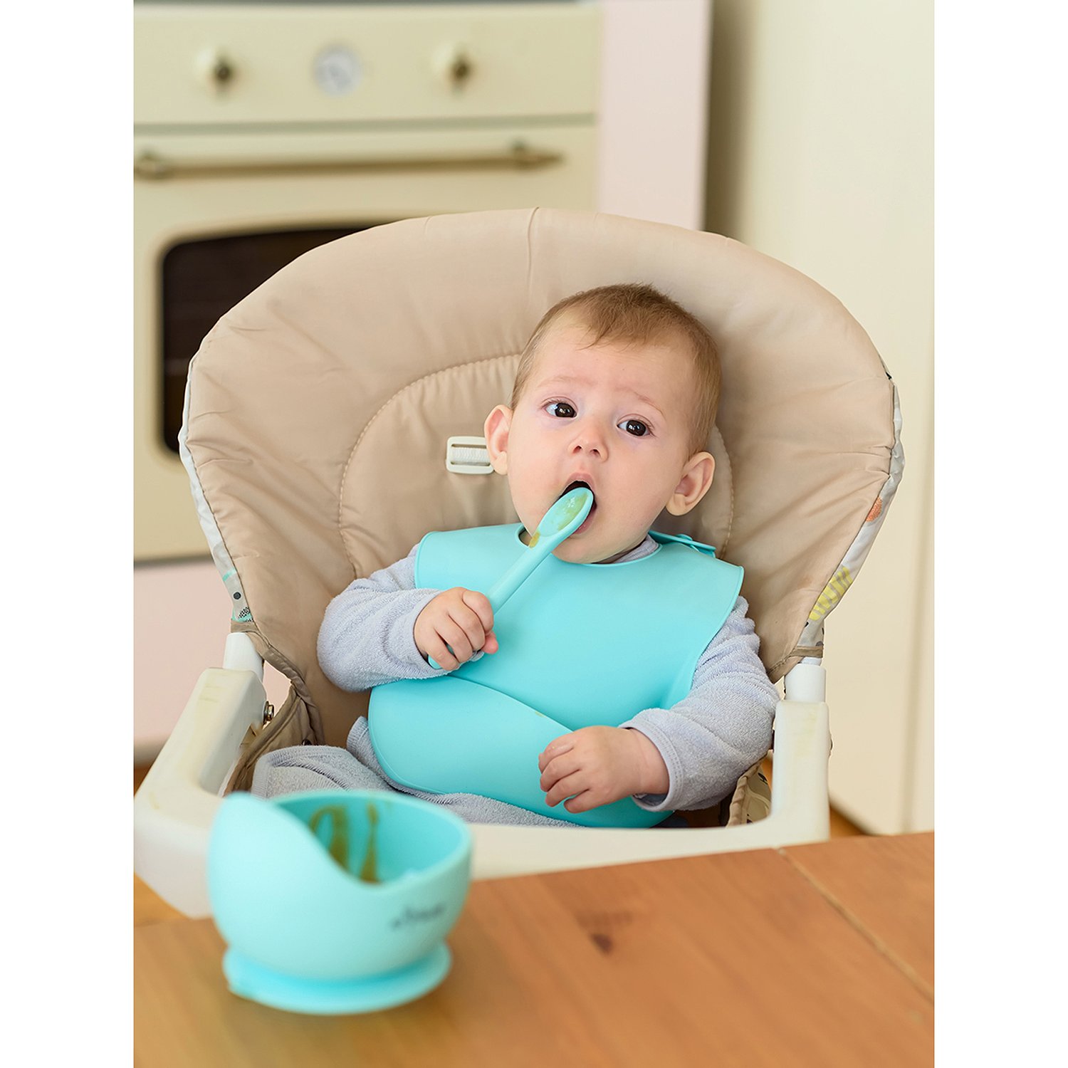 Нагрудник силиконовый Miyoumi с карманом - Mint N0001/226