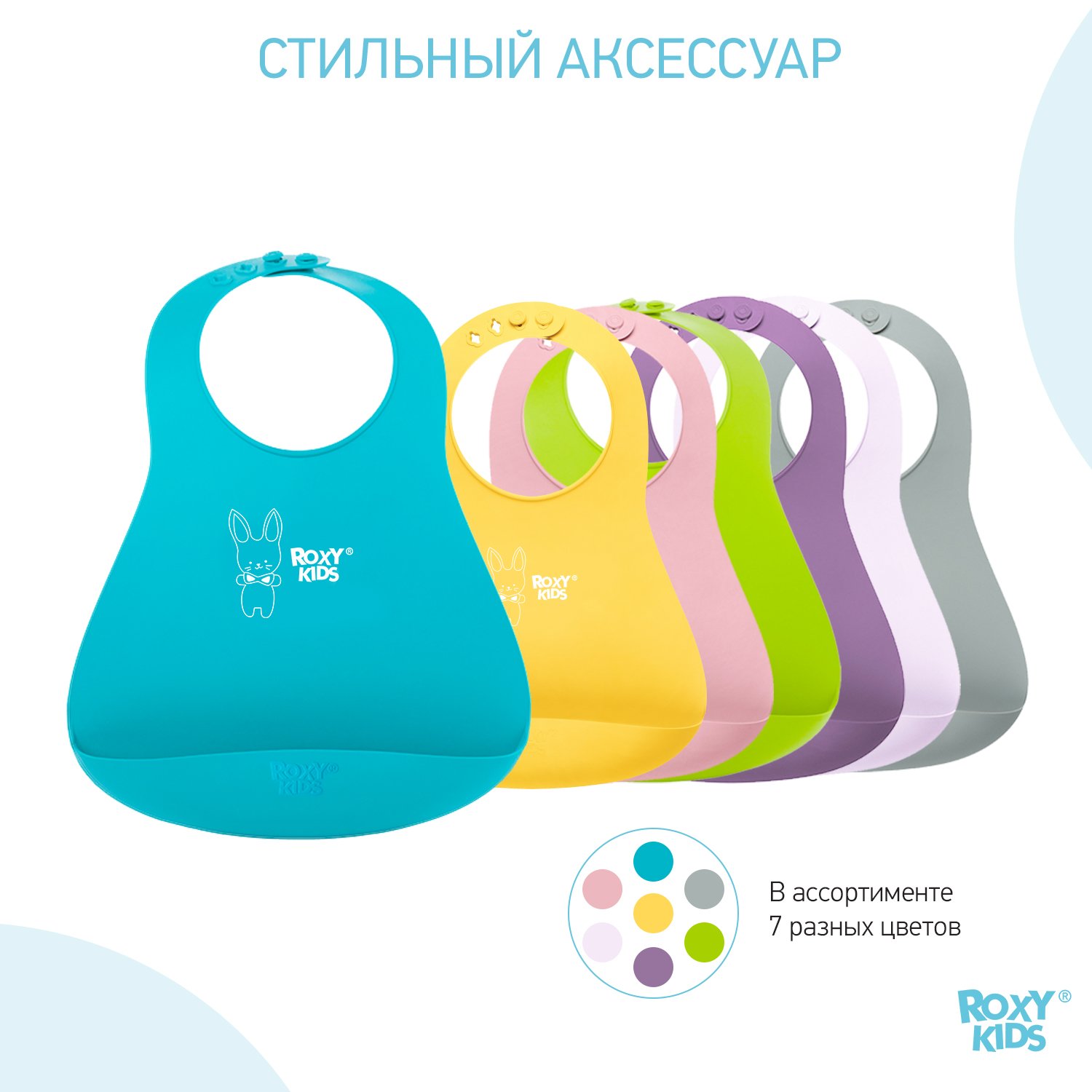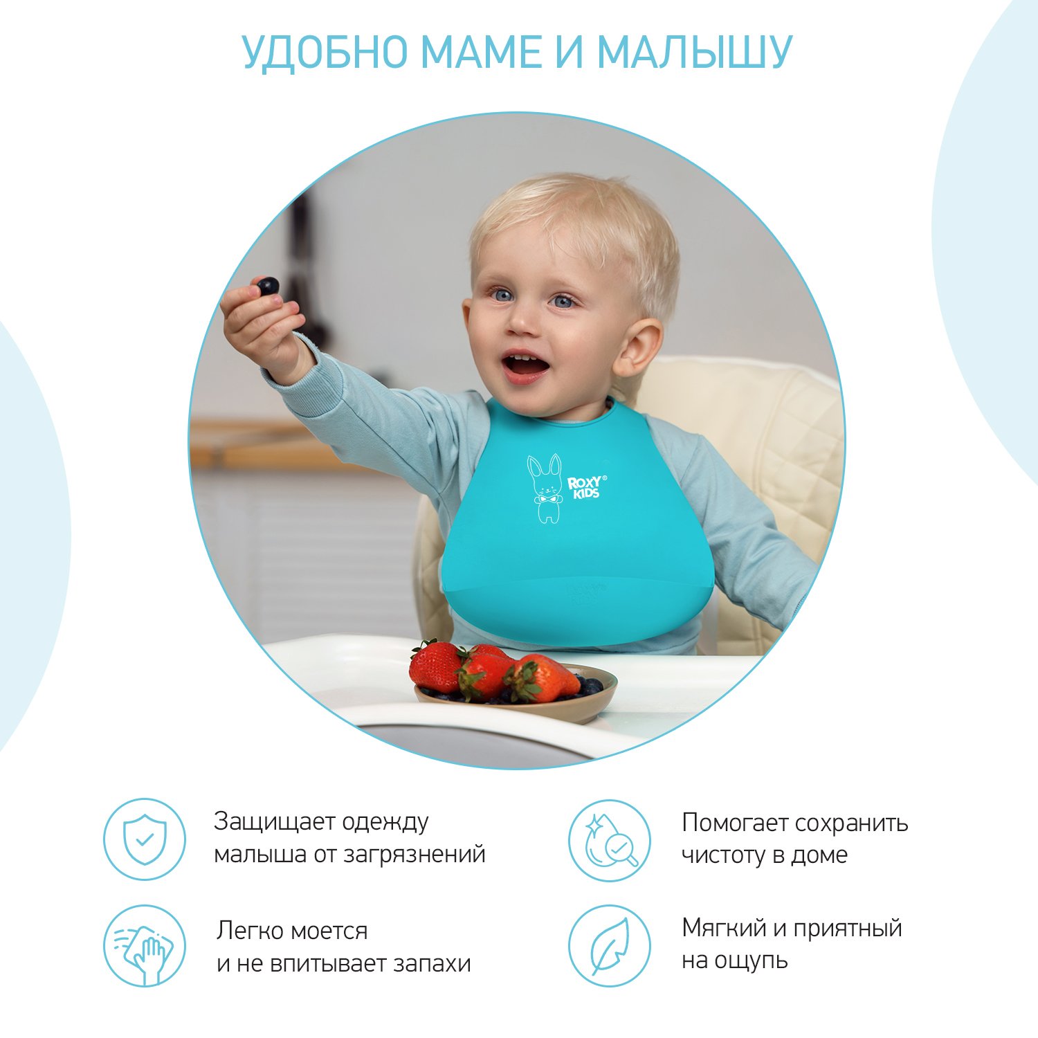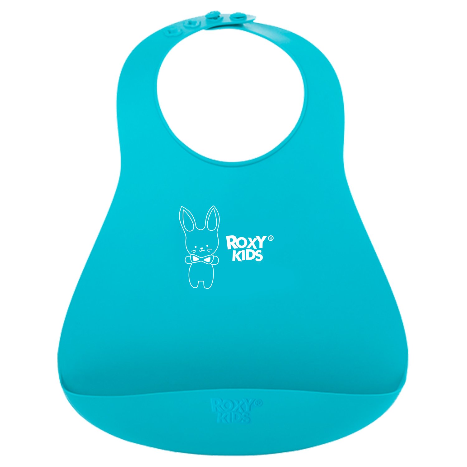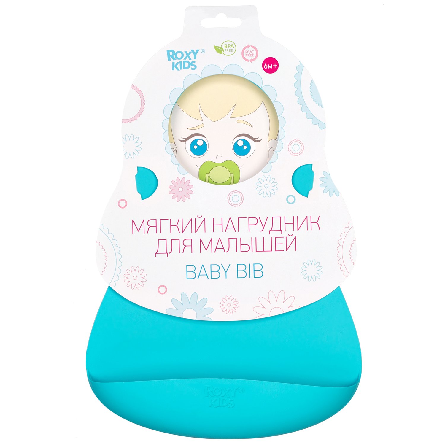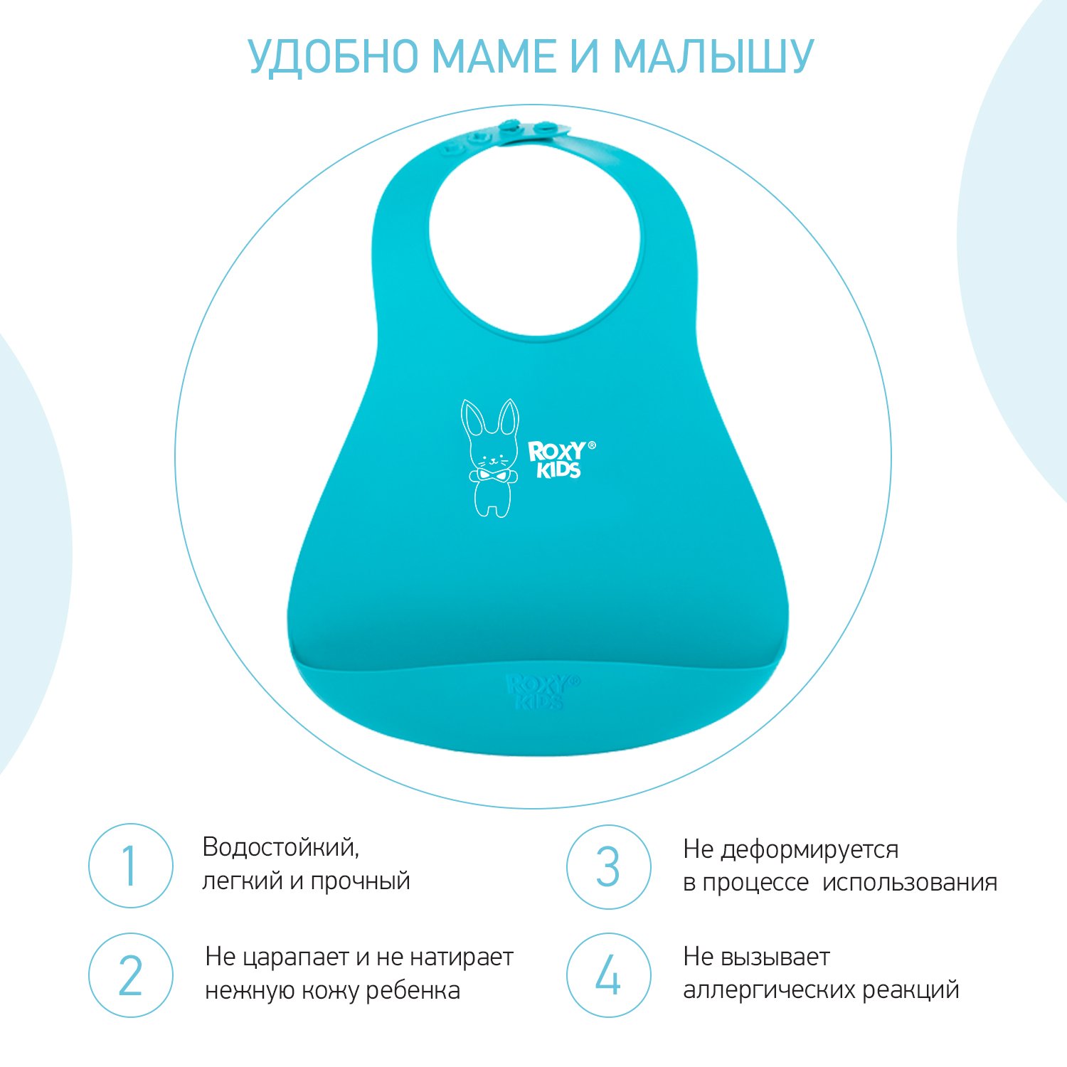 Нагрудник ROXY-KIDS для кормления мягкий с кармашком и застежкой цвет мятный RB-402M