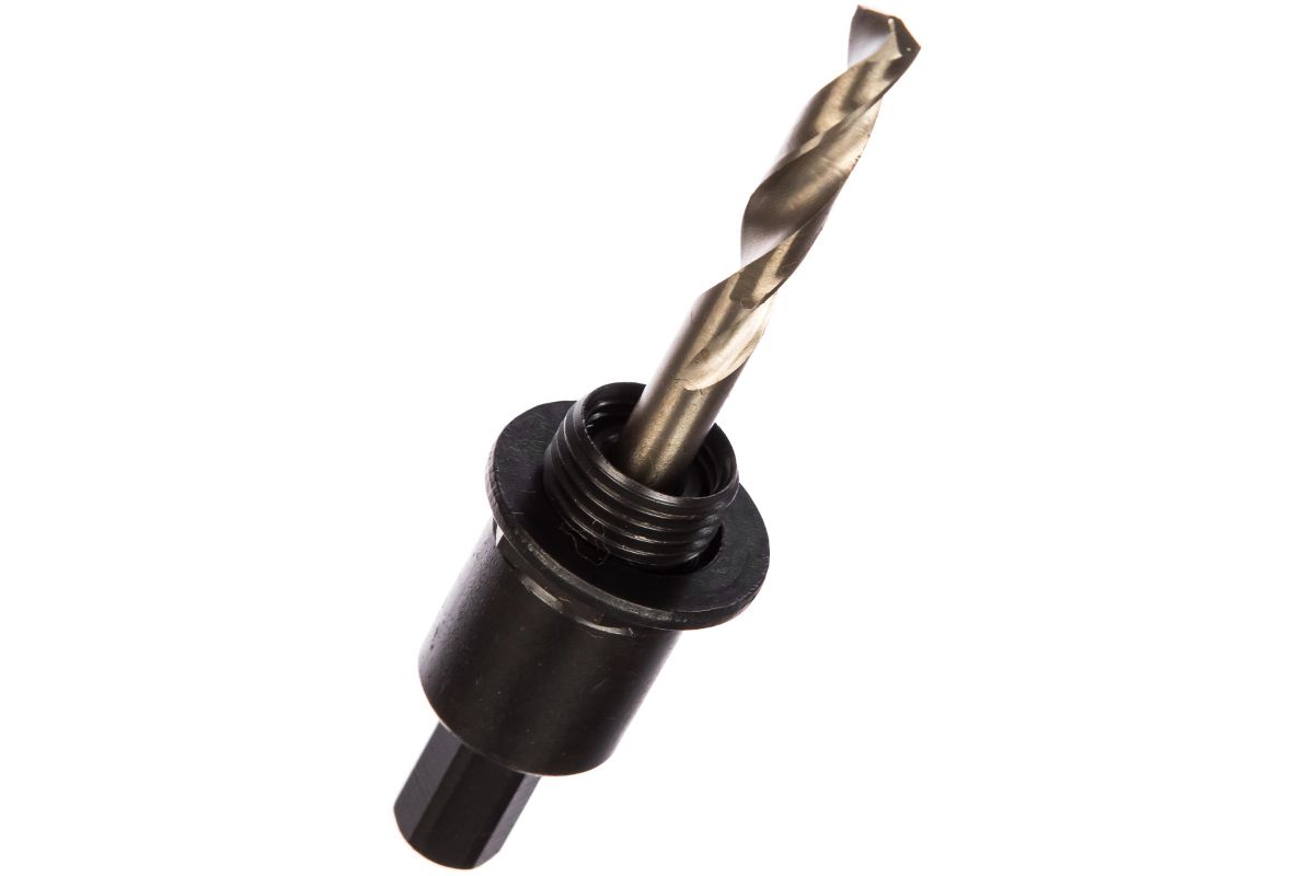 Оправка со сверлом для установки коронок для сверления дерева, металла и пластмассы.
