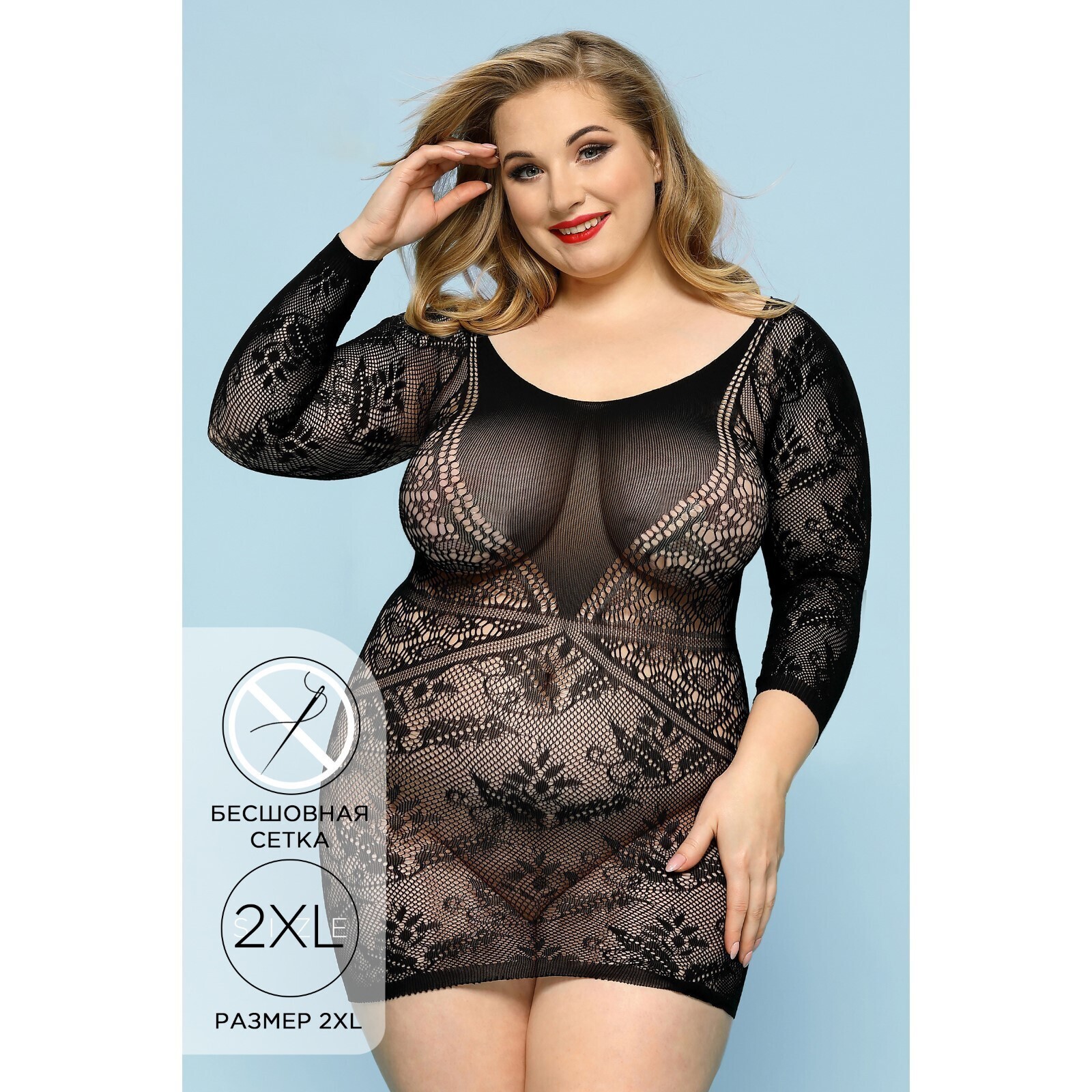 Мини-платье Candy Girl Darcy с рукавами выполнено из эластичной кружевной сетки. Бесшовный ажурный материал облегает фигуру как вторая кожа, подчёркивая аппетитные формы и повторяя изгибы. Геометричный рисунок расставляет правильные акценты на декольте и талии. V-образная вставка плотной сетки зрительно вытягивает силуэт и привлекает внимание к груди.