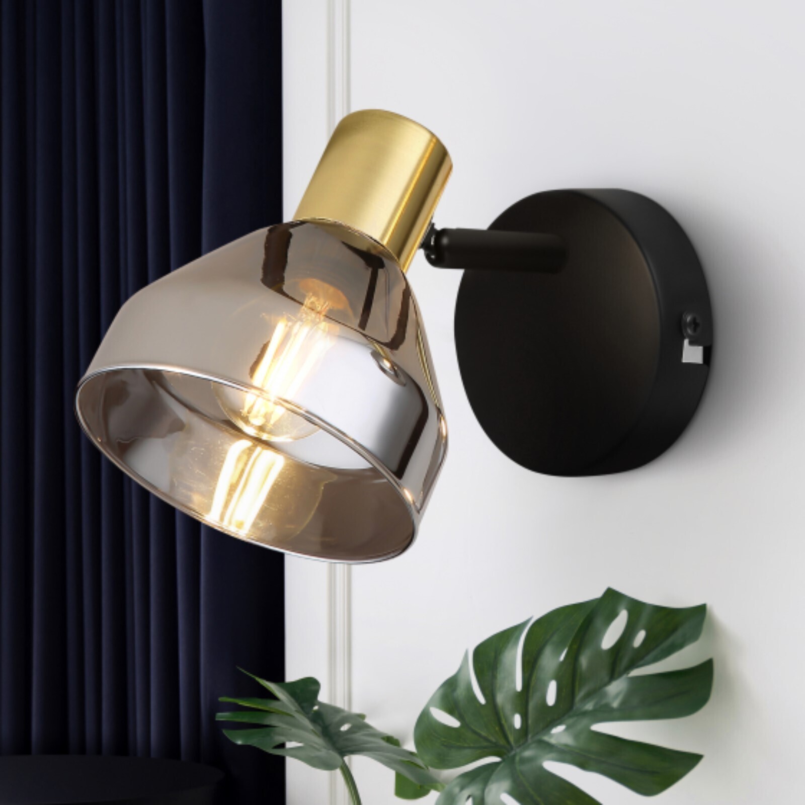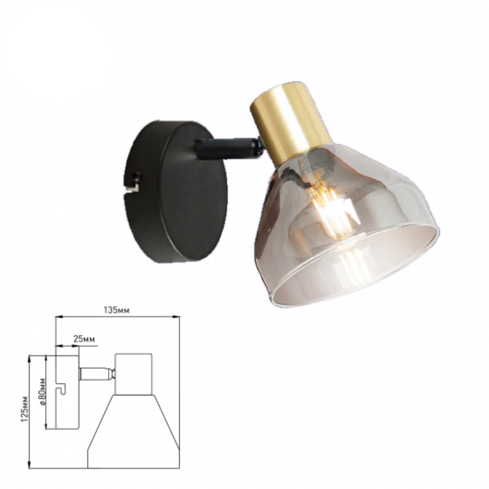 Корпус бра на стену Rivoli Kinge имеет стойкое окрашивание стильных цветов - чёрный и латунь.