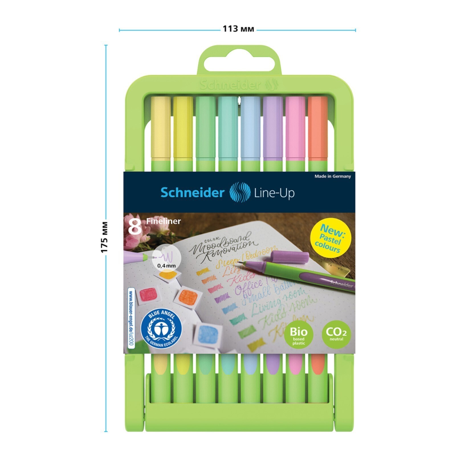 Набор капиллярных ручек 8 цветов, Schneider "Line-Up Pastel". узел 0,4 мм, пластиковый пенал-подставка, европодвес