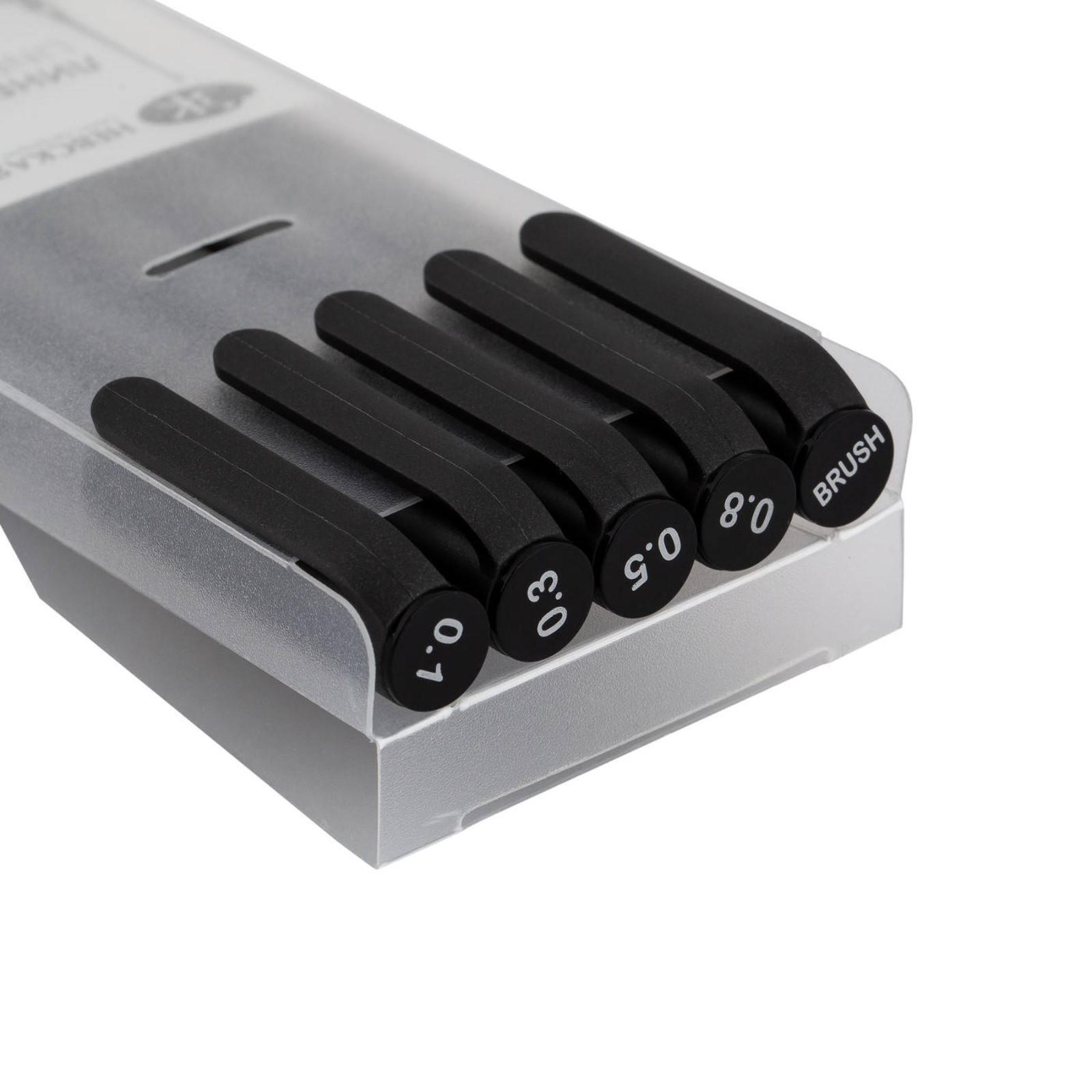 Набор ручек капиллярных ЗХК "Сонет" разные типы, 5 штук (0.1/.03./0.5/0.8/кисть), чёрный