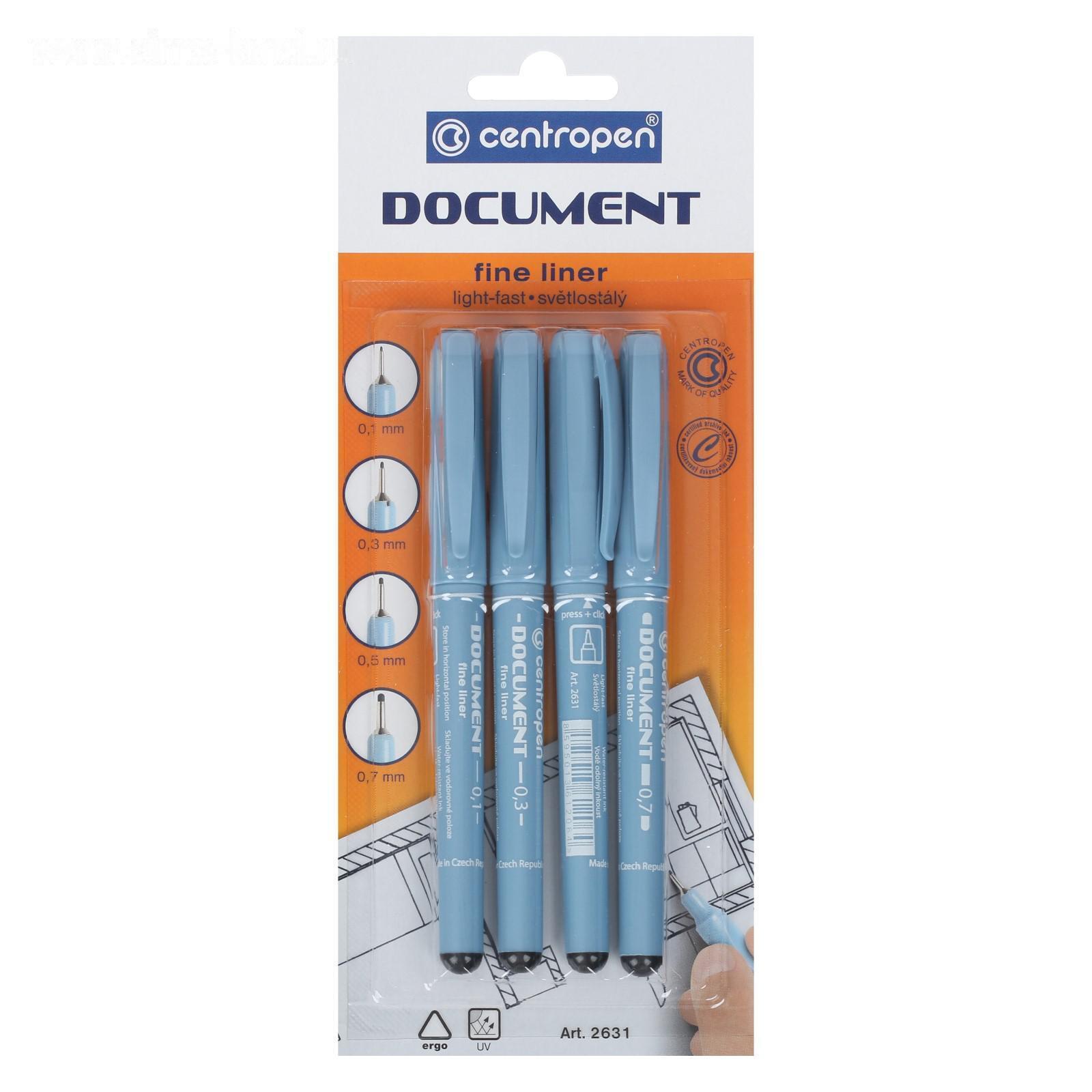 Набор ручек капиллярных 4 штуки Centropen 2631/04 "Document" цвет черный, 0,1/0,3/0,5/0,7 мм, европодвес