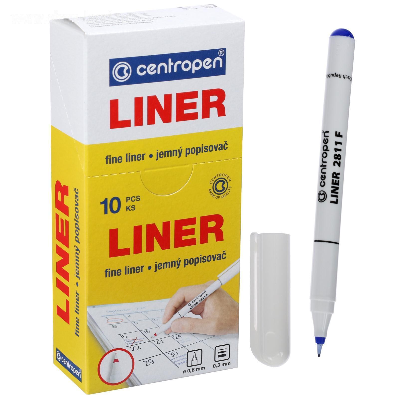 Ручка капиллярная, 0.8 мм, Centropen 2811/06, линия 0,3 мм, цвет синий, длина письма 1500 м