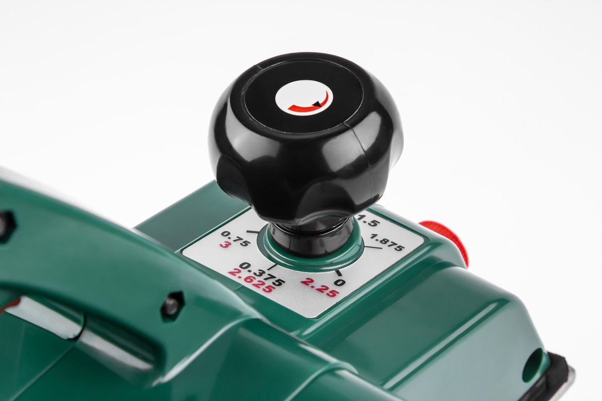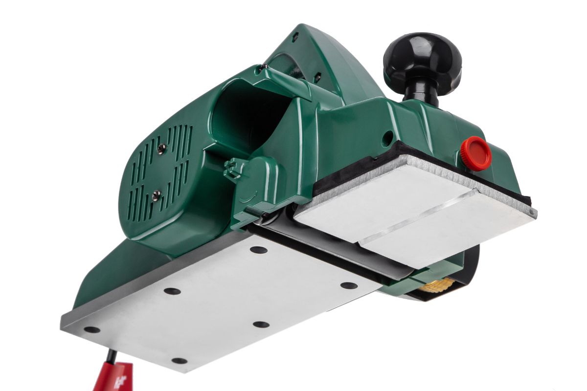 Мощный эргономичный рубанок с литым основанием для удобства работы оснащен двумя затачиваемыми ножами 110 мм.