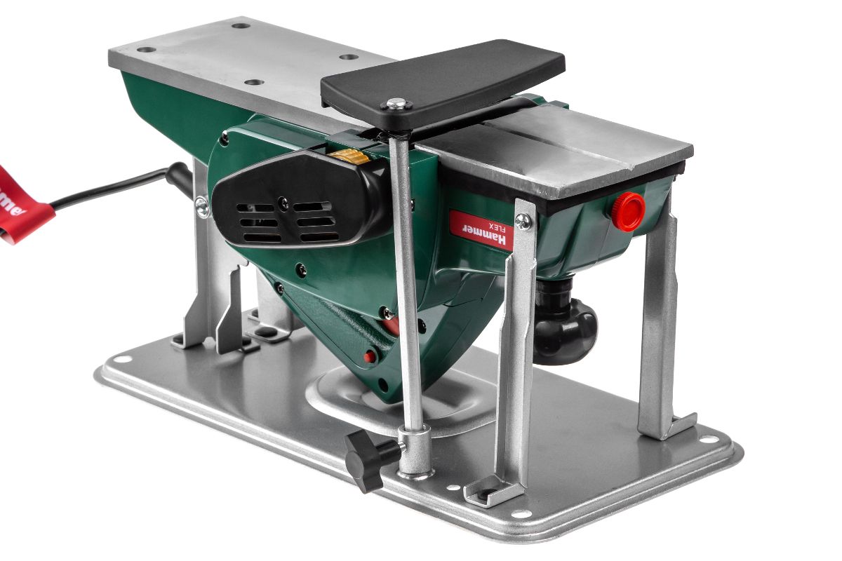 - Поставляется в комплекте с опорной рамкой и винтовыми зажимами, позволяющими фиксировать рубанок в перевернутом положении и подавать заготовку на стационарно закрепленный инструмент.