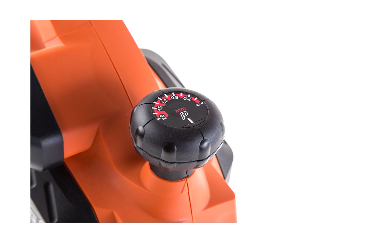 Глубина среза и выборки четверти регулируются поворотом передней ручки рубанка (точность — до 0,2 мм).