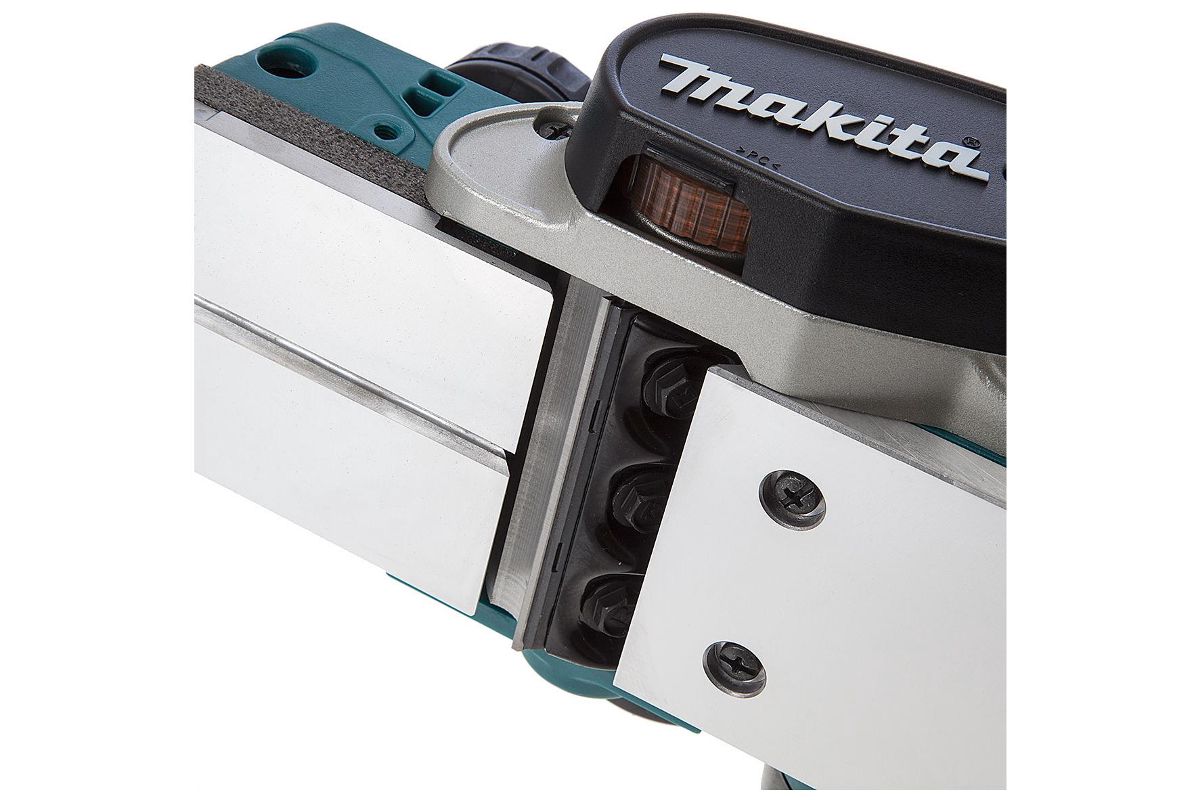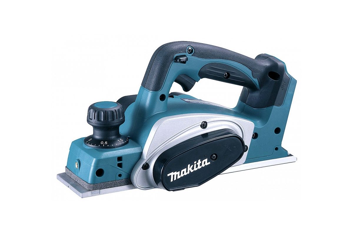 MAKITA DKP180Z – аккумуляторный рубанок для профессионального использования. Работает от 18 В аккумулятора. Зарядное устройство и батарея не входят в комплект. Требуется приобрести их дополнительно или взять от другого инструмента MAKITA 18 В. За проход снимает полосу материала в 82 мм.