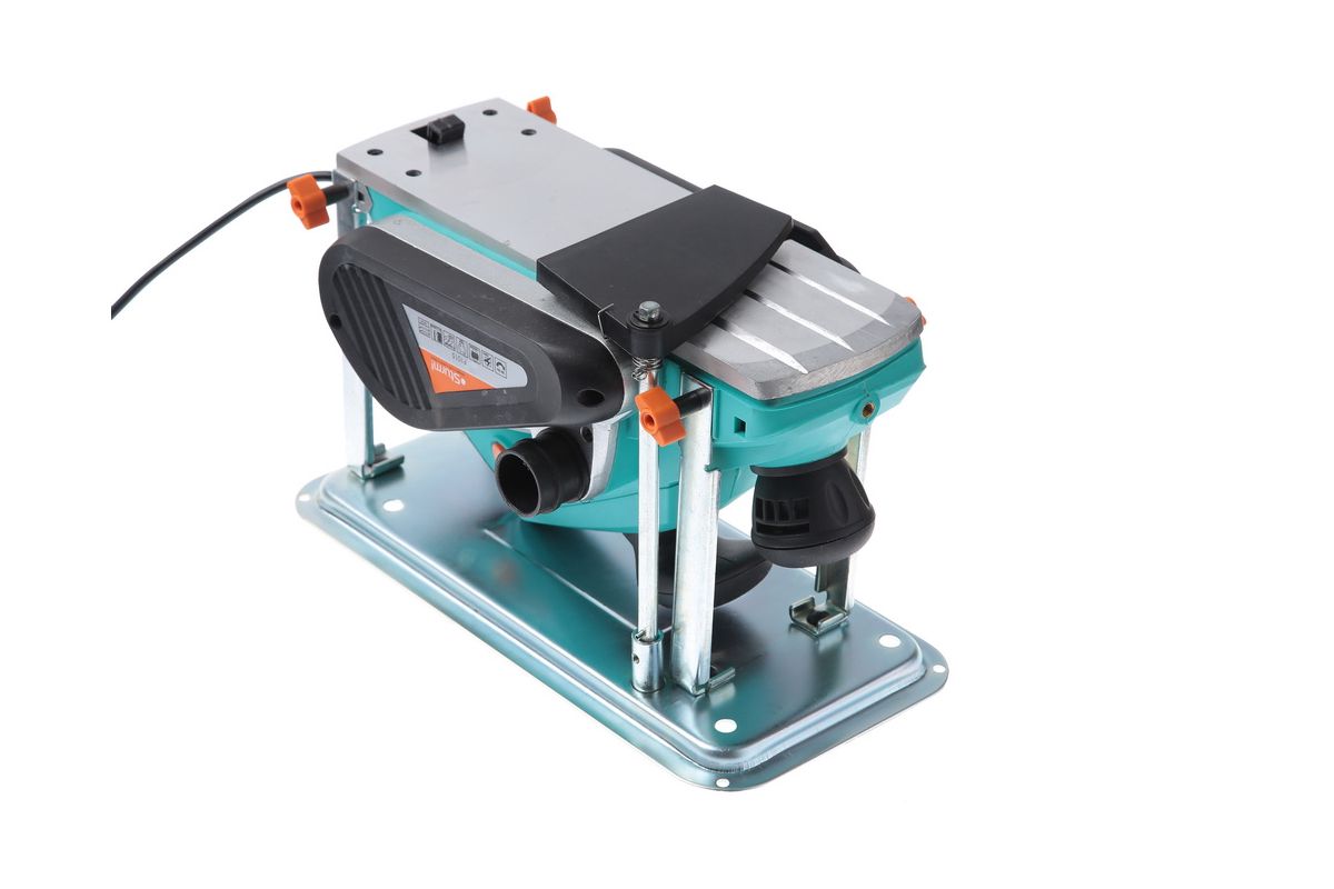 Мощный (1,5 кВт) электрический инструмент. Применяется для обработки дерева разных пород. Характеристики: двигатель – 1500 Вт; ширина ножа – 11 см; макс. толщина среза – 3,5 мм; глубина выборки четверти – до 14 мм. Преимущества: возможность установки в стационарном режиме; снятие фаски под углом 45 о ; увеличенная длина основы; система пылеотвода.