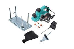 Модель можно использовать как для ручного строгания, так и в качестве стационарного деревообрабатывающего станка. Для этого инструмент фиксируется на рабочем столе с помощью приспособлений, идущих в комплекте.
