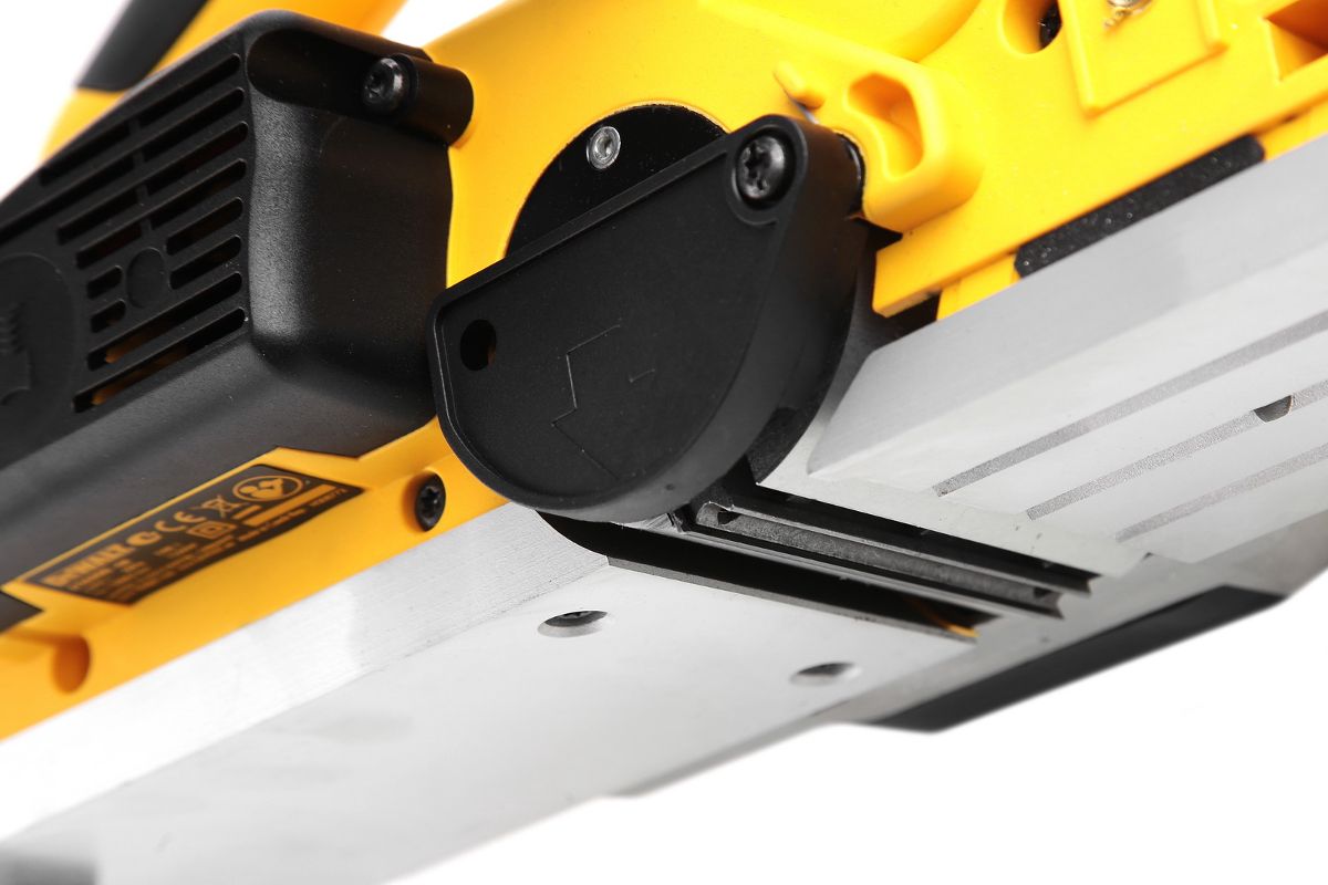 DeWalt D26500K — сбалансированный и крайне надежный рубанок. Мощный двигатель позволяет обрабатывать дерево любой плотности. Маленький шаг регулировки (всего 0,1 мм) позволяет осуществлять точную работу. Шкала регулировки расположена в передней части корпуса. Двусторонние ножи из твердосплавных металлов, по мере необходимости, можно переставлять острой кромкой наружу. В подошве расположены три разноразмерные канавки для фасок. Конструкция подошвы также предусматривает наличие предохранительного ребра. Благодаря этому, рубанок можно поместить на рабочую поверхность. Дожидаться полной остановки необязательно. Для большего удобства в работе и повышенной надежности, в DeWalt D26500K предусмотрена функция блокировки случайного включения. В зависимости от задач, направляющую можно закрепить как с левой, так и с правой стороны. Параллельный упор можно также установить с любой стороны инструмента. Указанные возможности позволяют регулировать работу в зависимости от поставленных задач. В модели предусмотрены левый и правый эжектор стружки. Для облегчения работы с пылесосом, модель снабжена переходником. DeWalt D26500K снабжен ограничителем глубины выборки четверти. Параллельную направляющую, параллельный упор и ограничитель выборки глубины можно крепить как слева, так и справа — для большего удобства. Для подключения пылесоса предусмотрен переходник. Обе ручки покрыты прорезиненным материалом для большего удобства в употреблении.