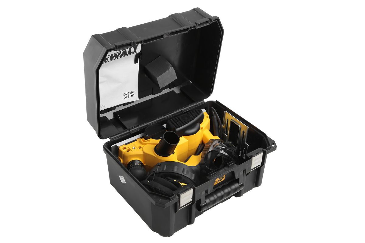 Рубанок DeWALT D26500K – удобный и производительный инструмент с удобными рукоятками, которые не выскользнут из рук. Отлично работает с любой (даже самой твердой) древесиной. Улучшенная система удаления стружки. Облегчено подключение пылесоса.