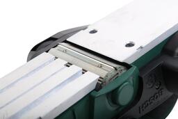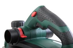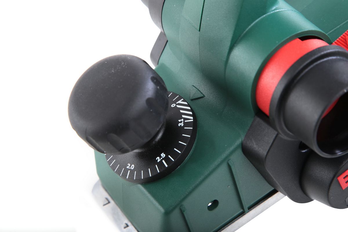 Данный электроинструмент — лидер в рамках класса по глубине строгания (3,1 миллиметра). Характеристики модели: мощность — 750 Ватт; обороты — 16500/минуту; ширина ножа — 82 миллиметра; максимальная длина выборки четверти – 9 миллиметров; регулировка толщины среза и выборки четверти; автоматический башмак; двусторонняя система отвода стружки; 3 V-образных паза для снятия фаски.