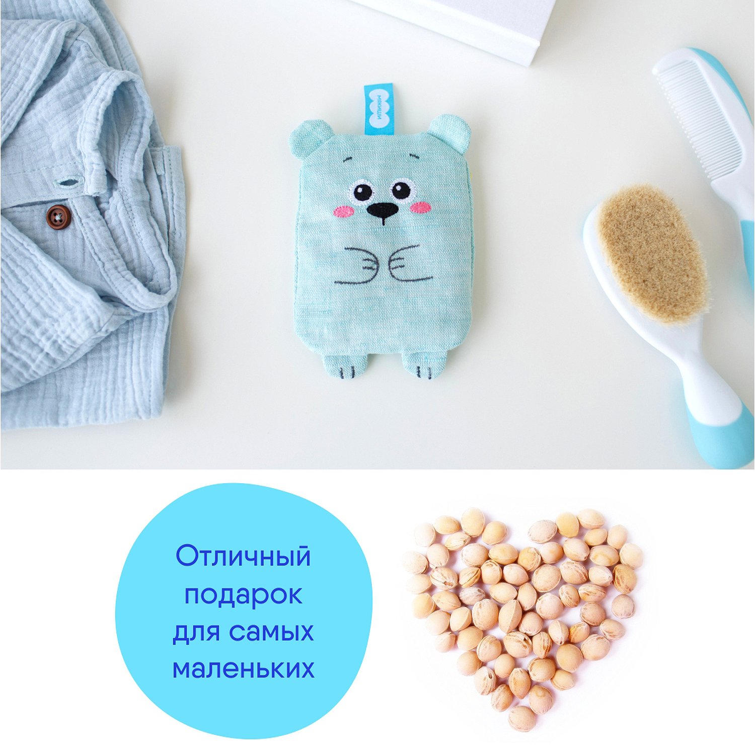 Игрушка-грелка Мякиши с вишнёвыми косточками Крошка Мишка для новорожденных от коликов подарок 661