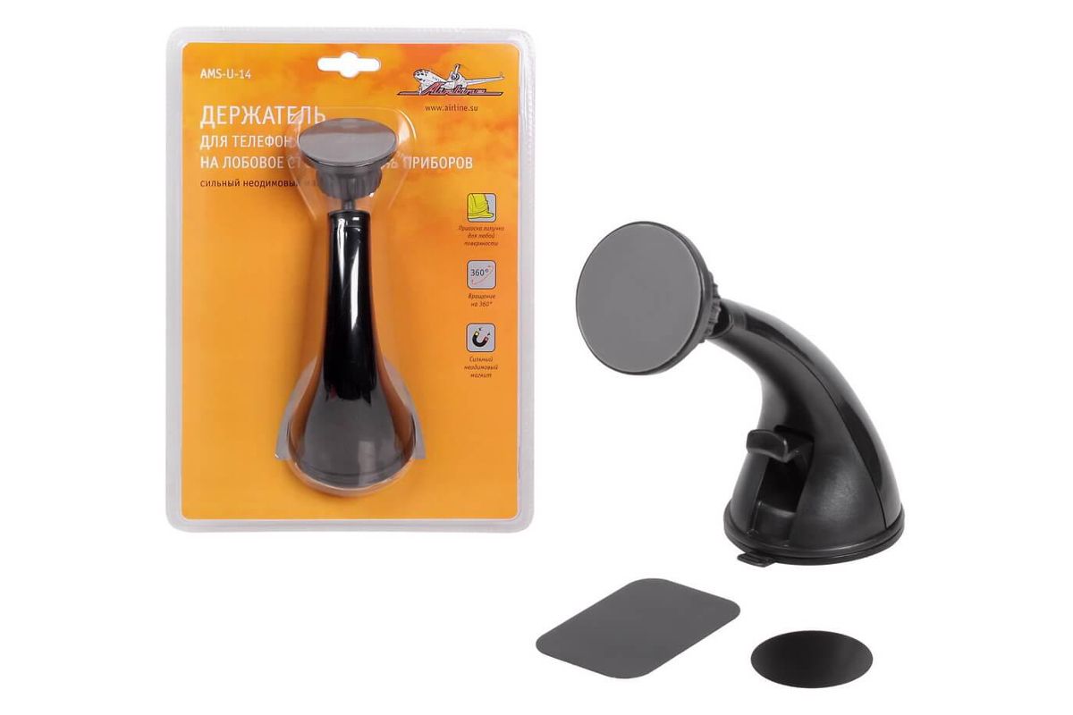 Держатель для телефона AIRLINE AMS-U-14 на торпедо/лоб. стекло магнитный прорезиненный