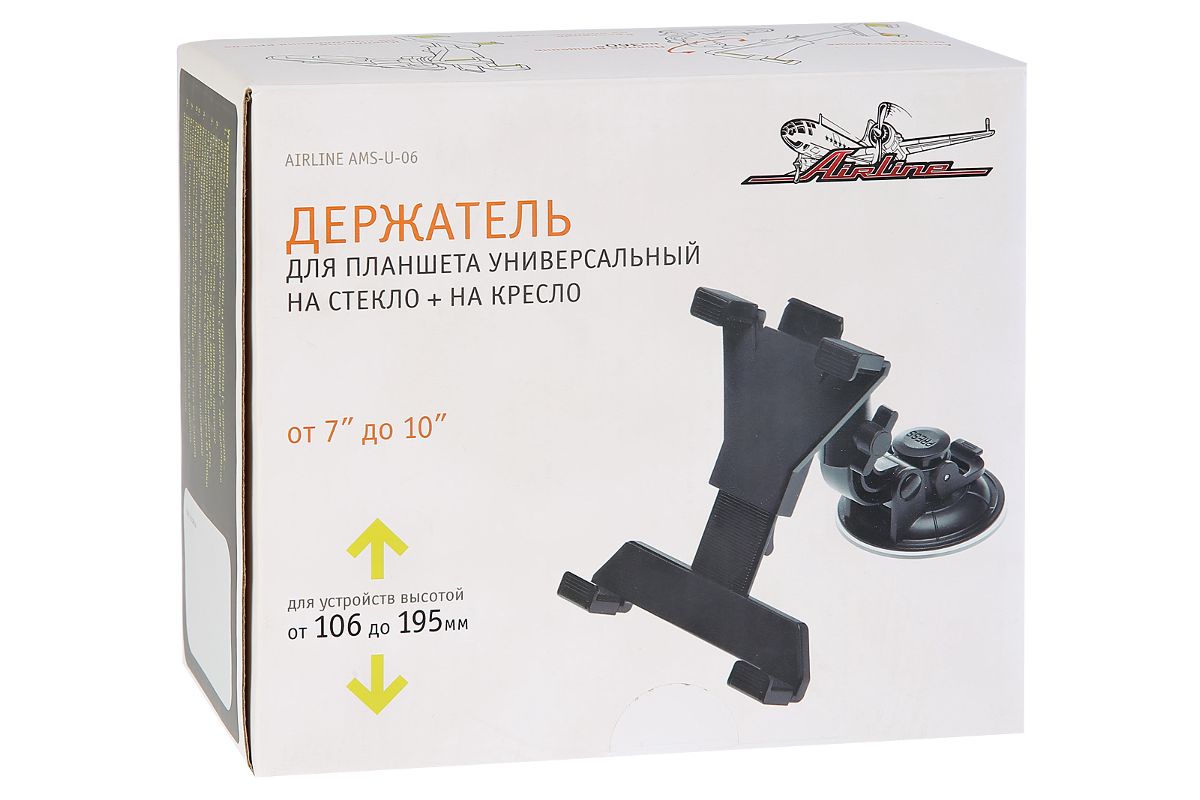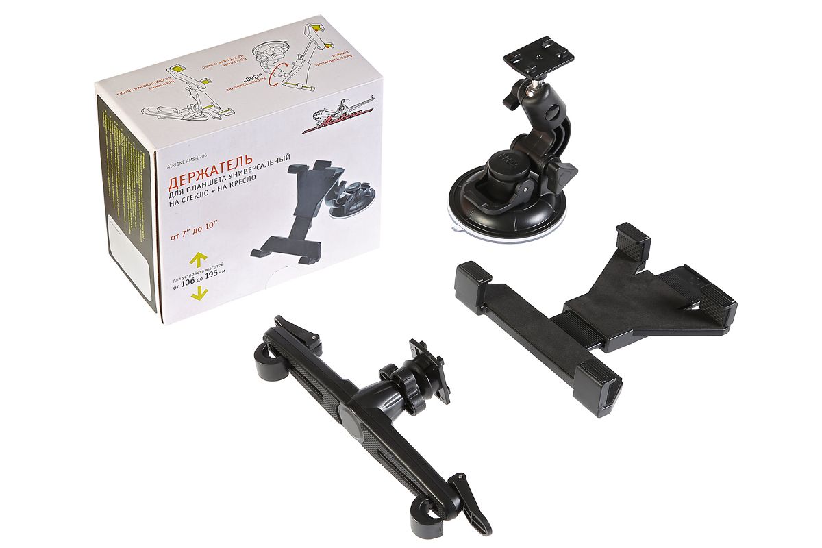Держатель AIRLINE AMS-U-06 для планшета универсальный на стекло + на кресло