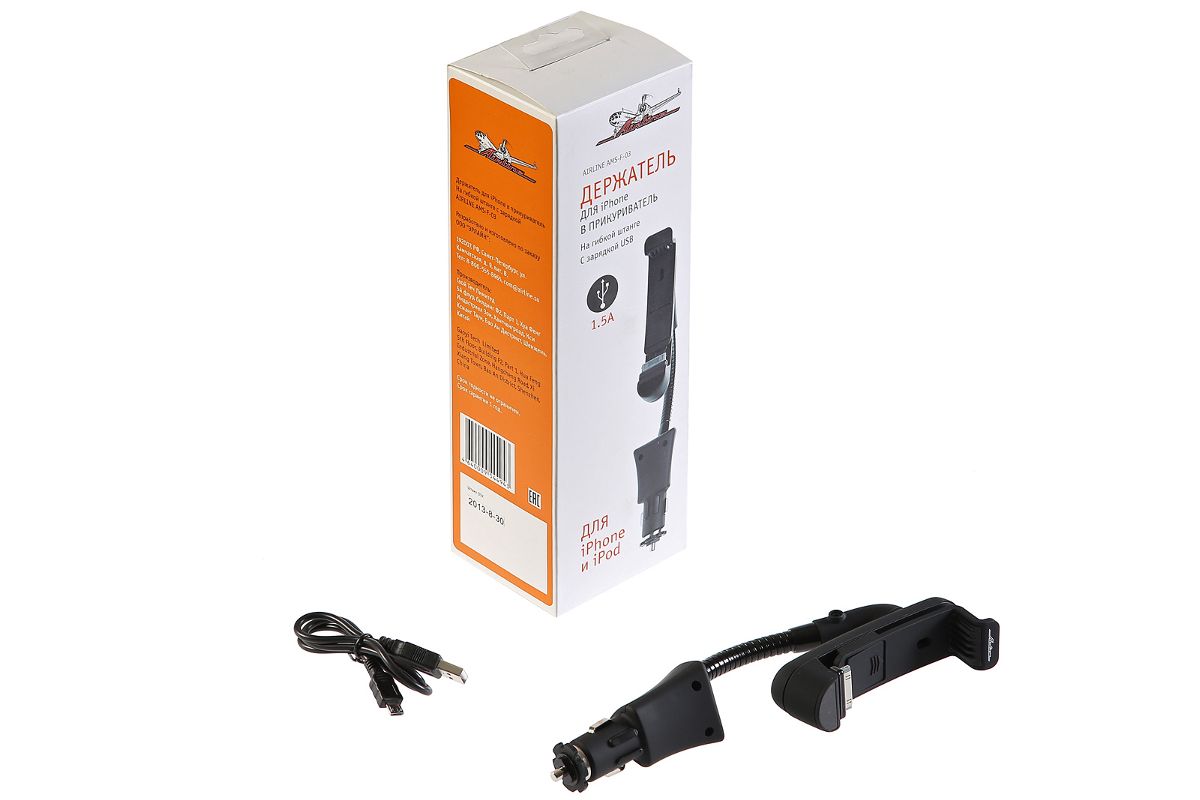 Держатель AIRLINE AMS-F-03 для iPhone в прикуриватель на гибкой штанге с зарядкой Ток USB: 1.5А