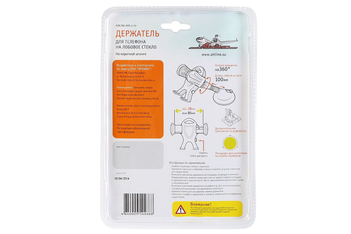 Держатель AIRLINE AMS-U-03 для телефона на лобовое стекло на короткой штанге
