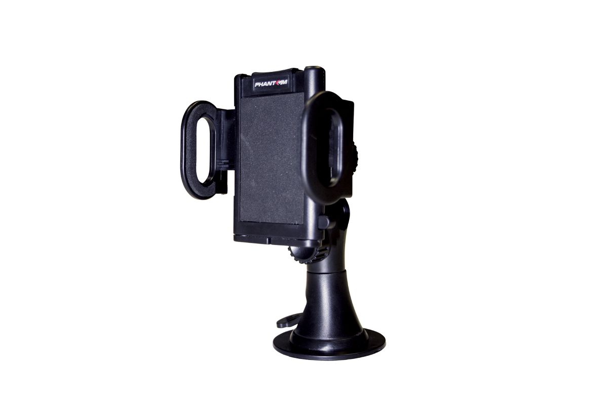Универсальный, на поворотной ножке. Крепление на лобовое стекло автомобиля. Легко и надёжно устанавливается на присоску. Гибкая конструкция для оптимальной настройки положения держателя. Для аппаратов шириной от 40 до 100 мм.