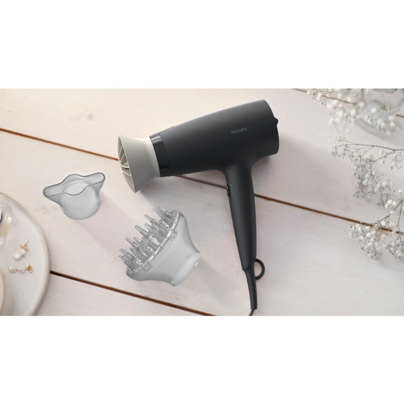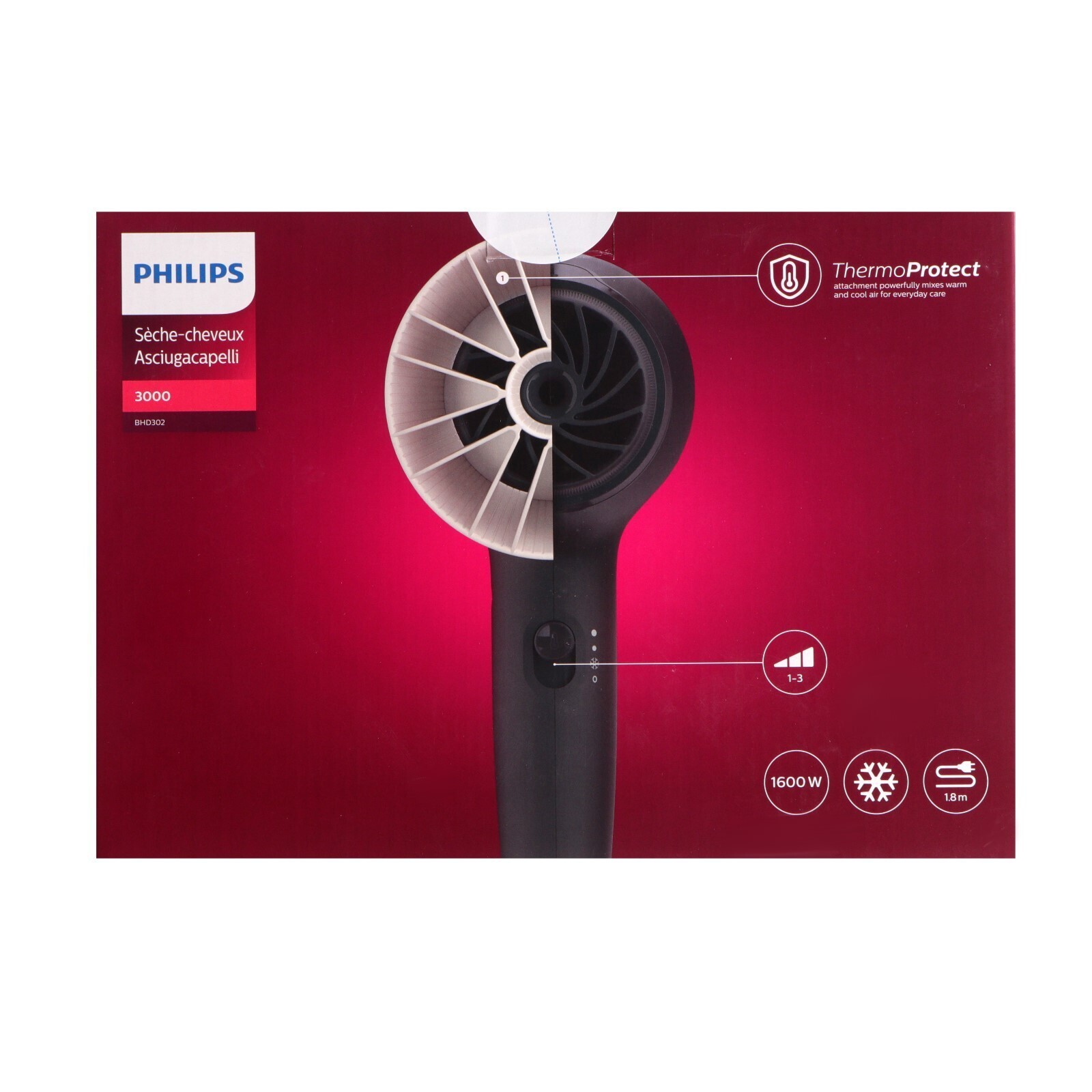 Фен Philips BHD302/00, 1600 Вт, 3 скорости, 3 темп. режима, 2насадки, хол. воздух, шнур 1.8м