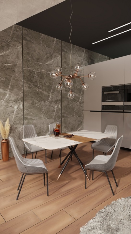 Стул в светло-сером цвете с металлическими ножками и небольшими подлокотниками из новой коллекции Milosh Tendence. Серый цвет – не маркий и стильный. В зависимости от освещения в комнате его оттенок может меняться от темного к светлому. К тому же, он универсальный – подойдет почти к каждому стилю и цвету в интерьере. Приятный цвет, форма сидения и прямые металлические черные ножки в виде перевернутого конуса делают стул оригинальным. Обтекаемые, плавные формы спинки и подлокотников создают ощущение легкости и комфорта. Декор в виде ромбов освежает пространство. С этой моделью интерьер будет эстетичным и небанальным.